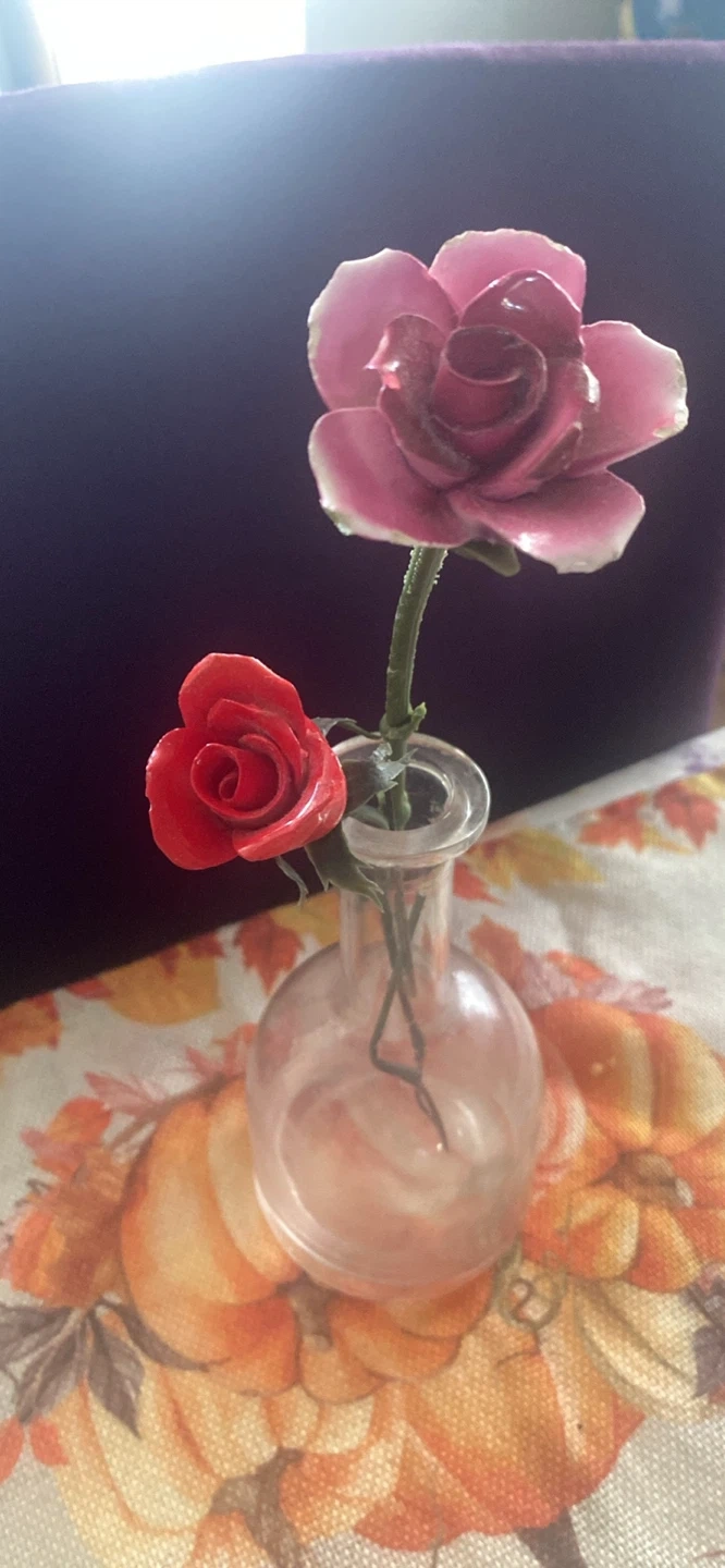 Decorative CERAMIC Roses in Small Glass Vase
