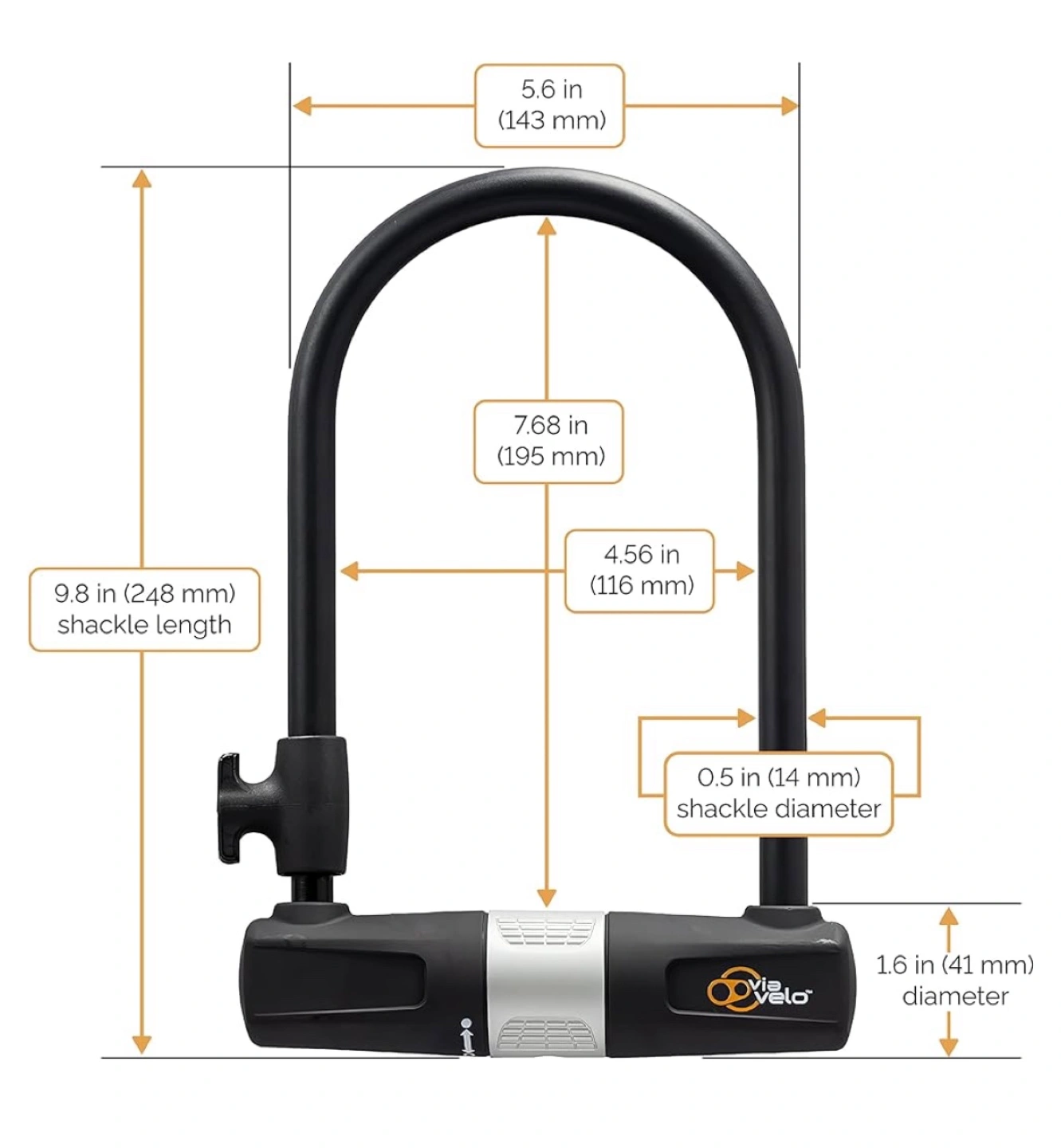 Secure your bicycle with this OnGuard 8001 U-lock and flexible cable. Features a durable steel shackle and a long cable for securing multiple parts of your bike. Includes mounting bracket for secure storage. Bike U Lock with Cable - Via Velo Heavy Duty Bicycle U-Lock,14mm Shackle and 10mm x1.8m Cable with Mounting Bracket for Road, Mountain, Electric & Folding Bike