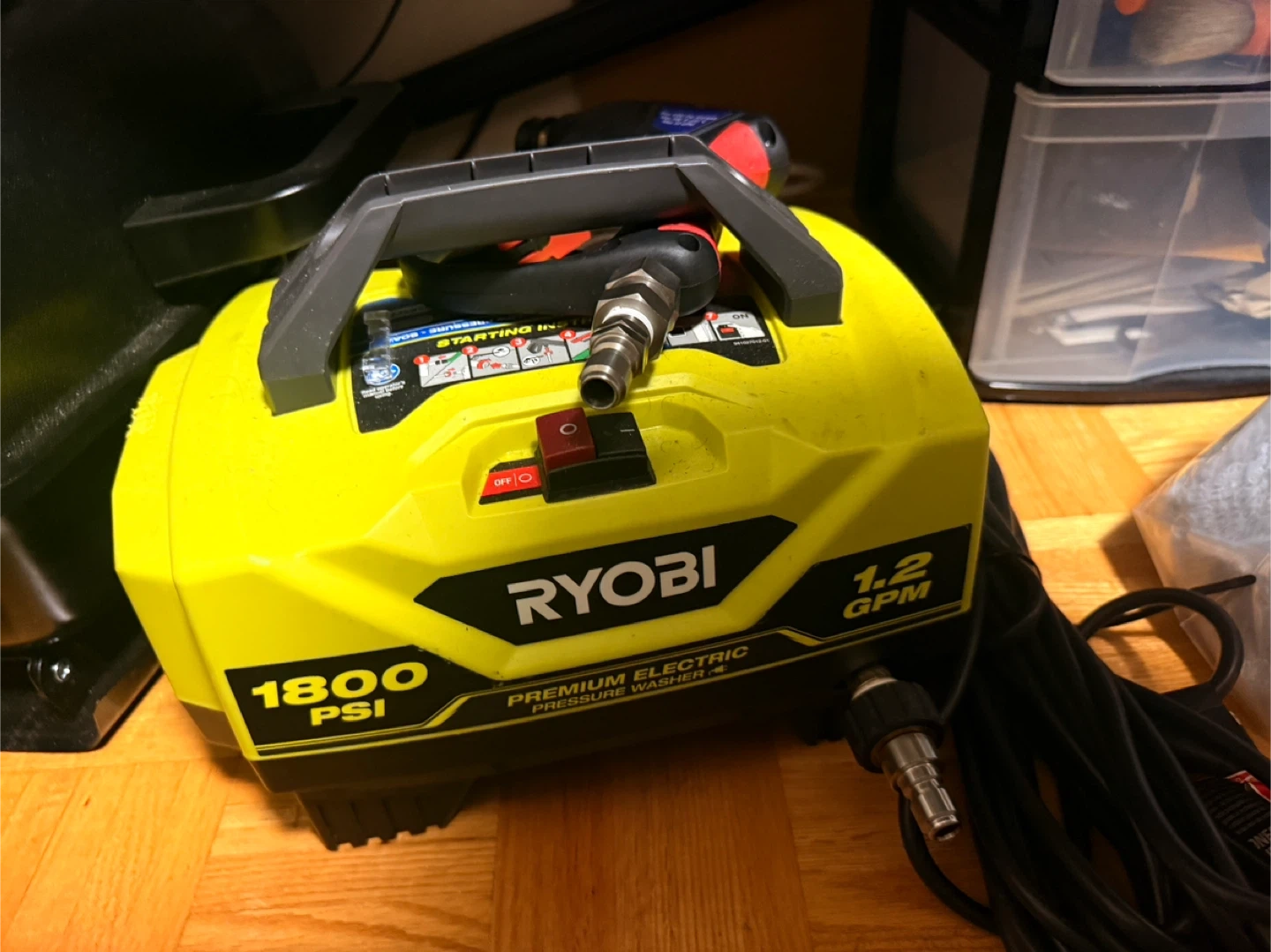 Selling a Ryobi electric pressure washer. It's in good working condition and ready to help you tackle those outdoor cleaning tasks. It delivers 1800 PSI and 1.2 GPM for effective cleaning. Great for patios, decks, and more!