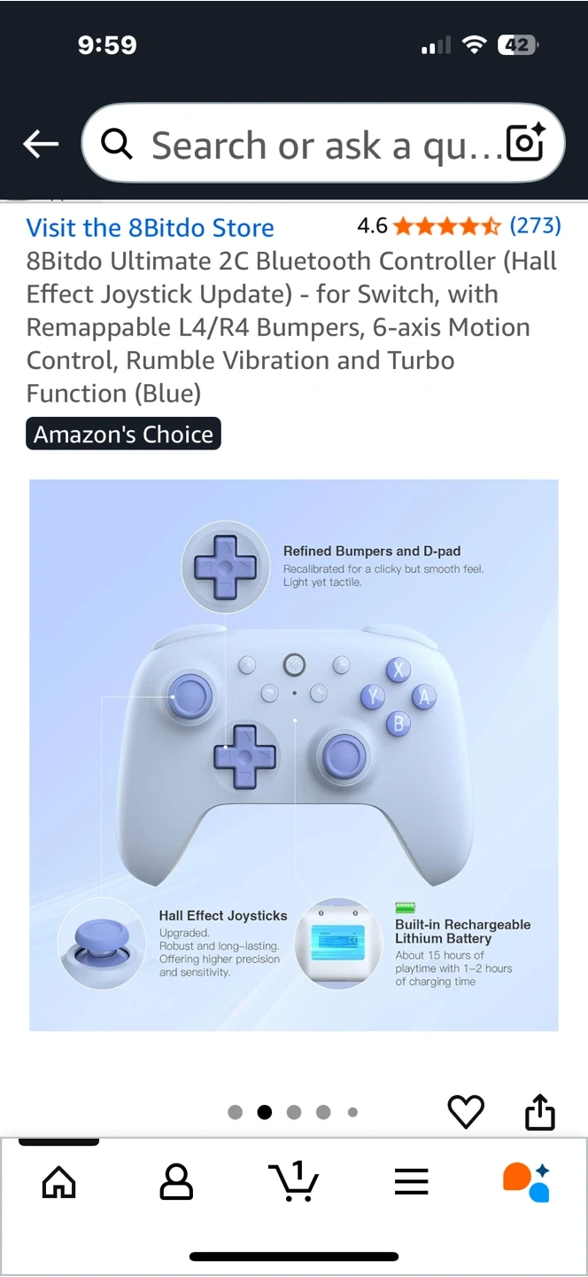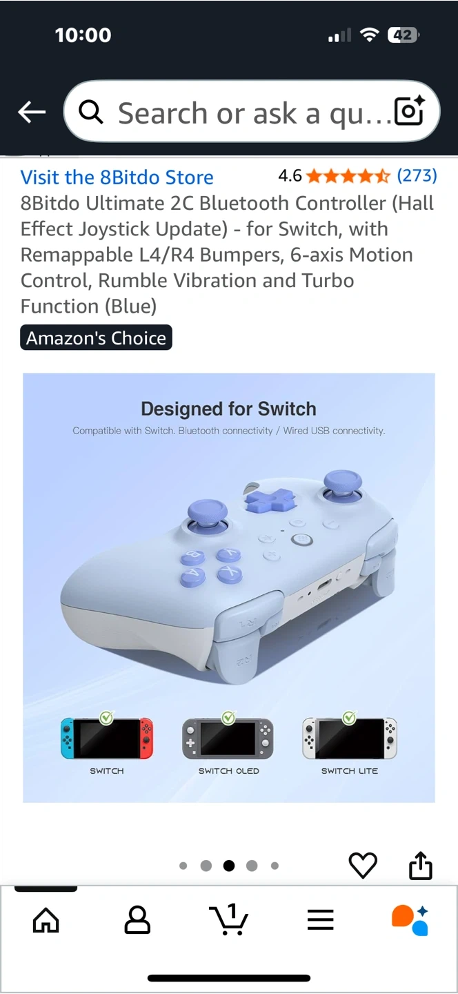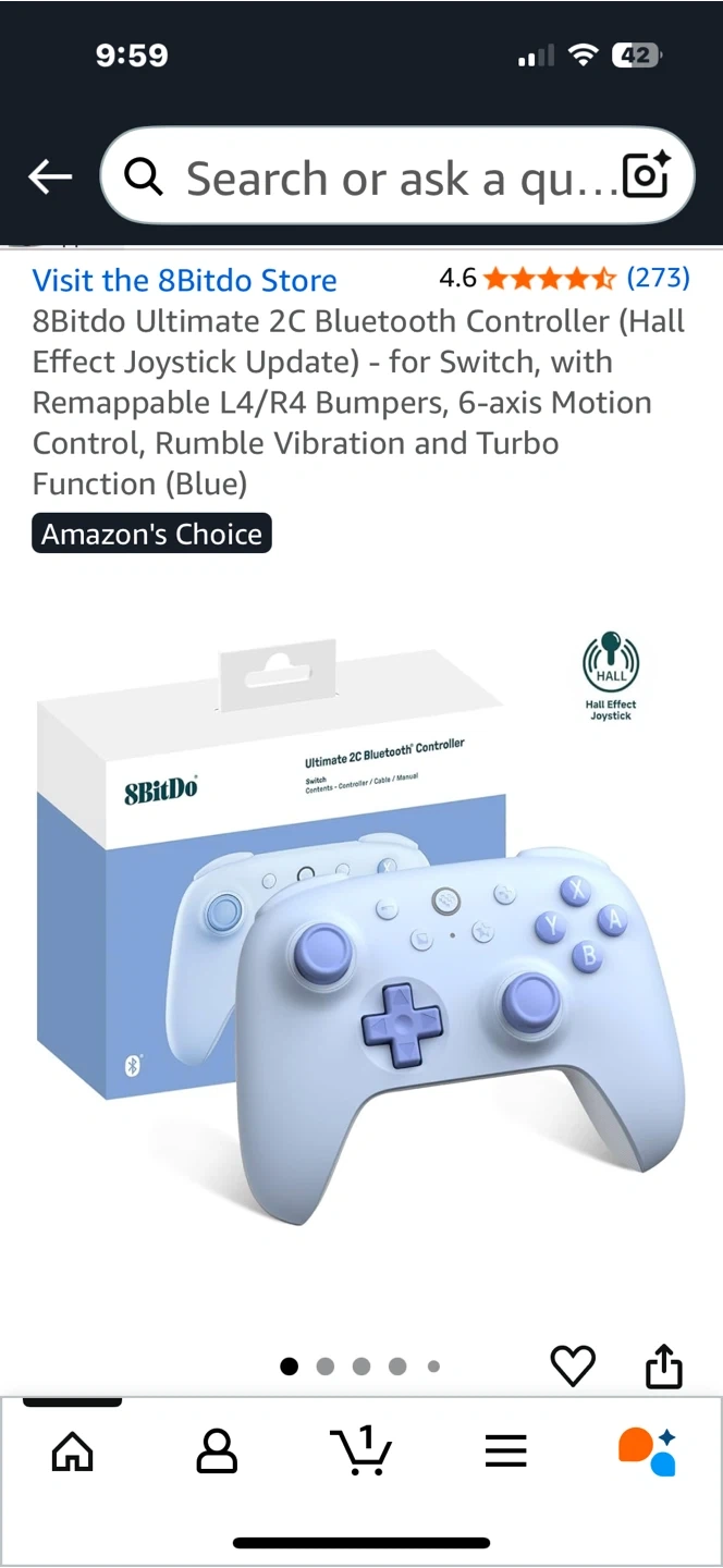 Selling an 8Bitdo Ultimate 2C Bluetooth Controller in blue! It's perfect for Switch, with remappable L4/R4 bumpers and 6-axis motion control. It also has rumble vibration and turbo function! Key features: - 6-axis Motion Control & Rumble Vibration - Designed for Switch with Bluetooth and Wired USB connectivity - Extra Bumpers and Non-linear Digital Trigger - Hall Effect Joysticks for higher precision and sensitivity - Built-in Rechargeable Lithium Battery