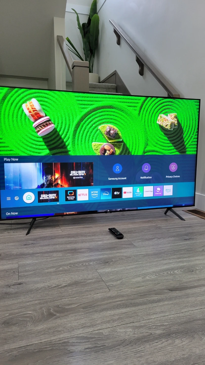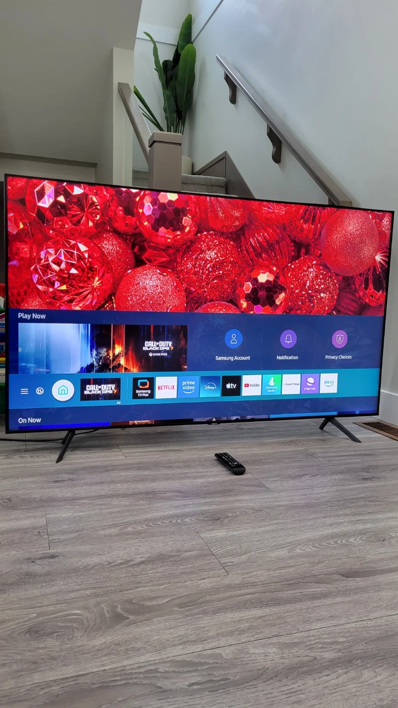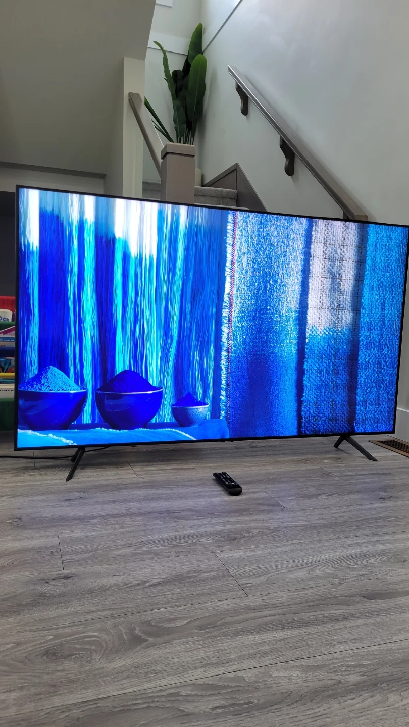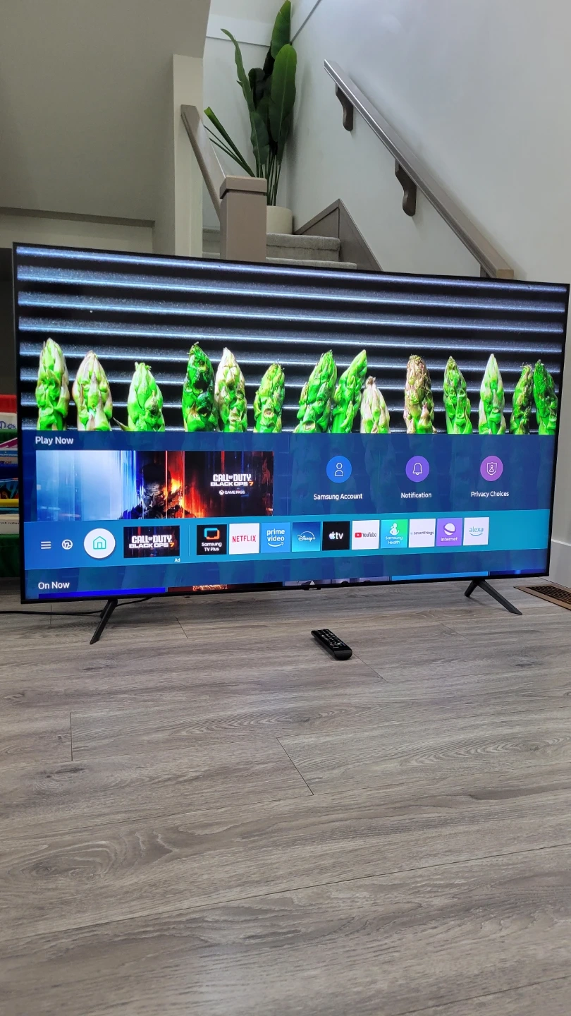 This Samsung smart TV displays vibrant colours. It's a great addition to any home entertainment setup. Comes with a remote. Ready for your favourite streaming apps!