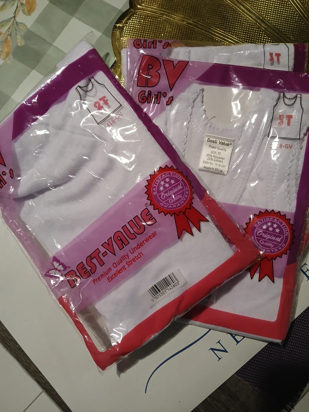 Girls' white tank tops from Best Value. Premium quality underwear with excellent stretch. Made of 65% Polyester and 35% Cotton. These are size 3t and 2t
