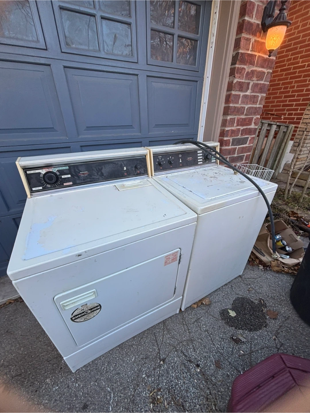 Selling a Kenmore washer and dryer set. They are white and have some signs of use, but they still work well.