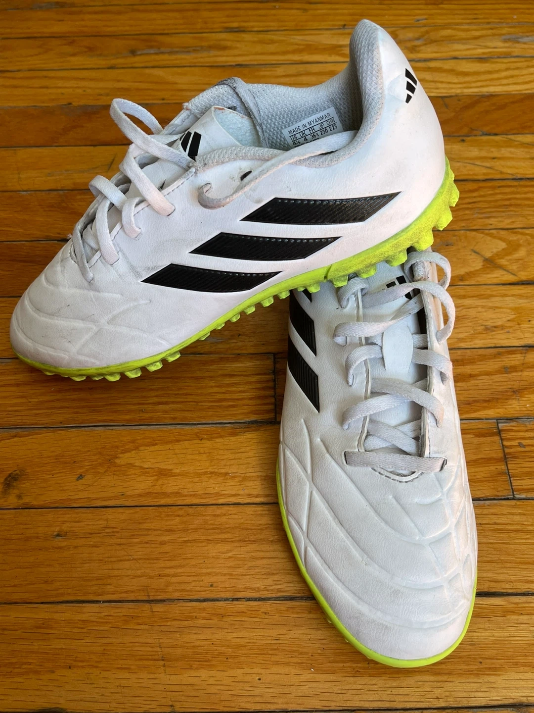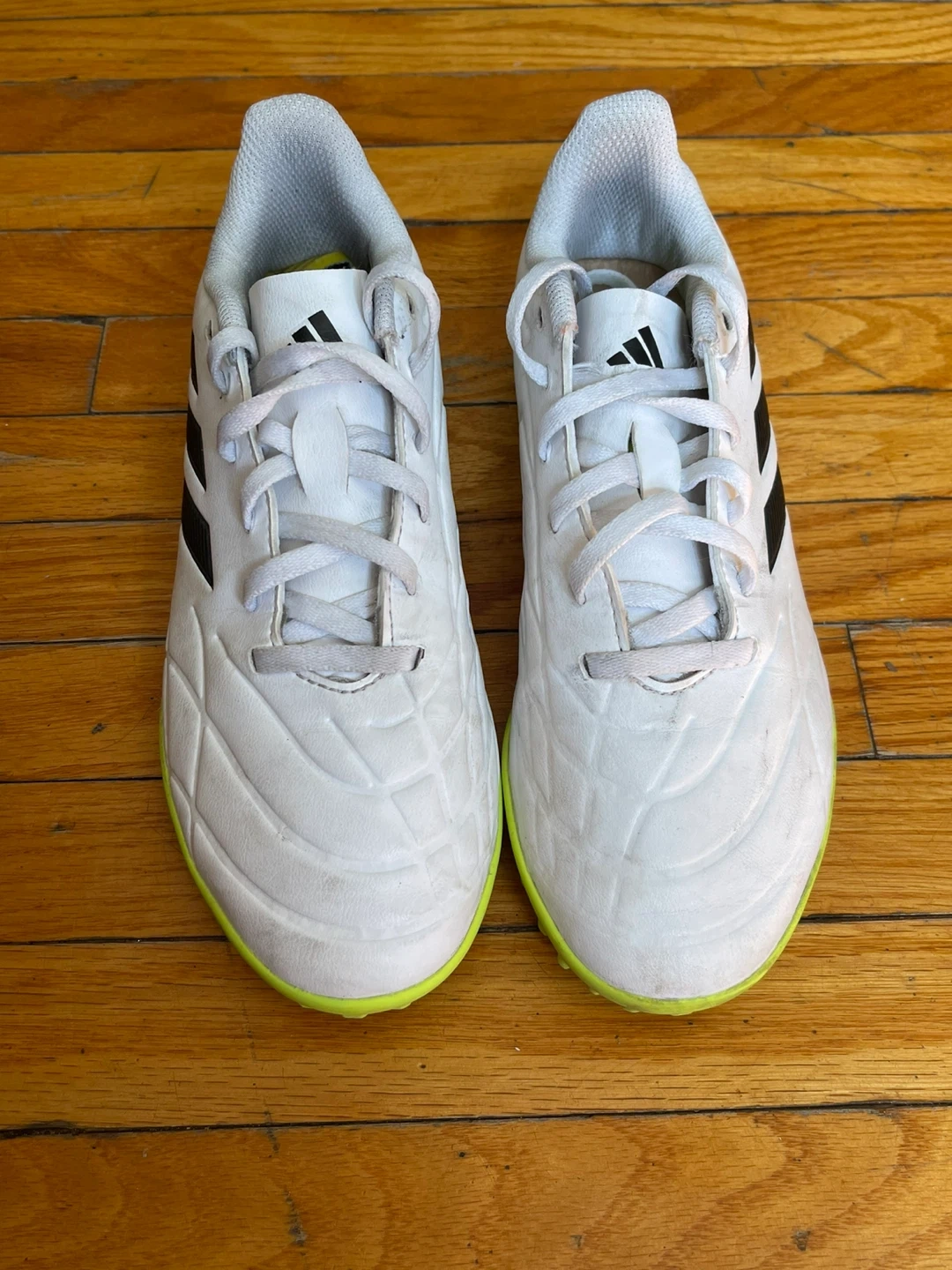 Buy & SellAdidas Soccer Cleats White/Black/YellowAdidas Soccer Cleats White/Black/Yellow$20Used Adidas soccer cleats in white, black, and yellow. These cleats are designed for artificial turf. Size 5ConditionGoodWHERE TO MEETWanda RdView MapSELLERverifiedDianaWest Bend1256 reviews1 chats·0 favorites·26 viewsSEND CHAT TO SELLERHi Diana! I’m interested in your listing.Hi Diana! I’m interested in your listing.Get the Karrot app to chatSign In to chat
