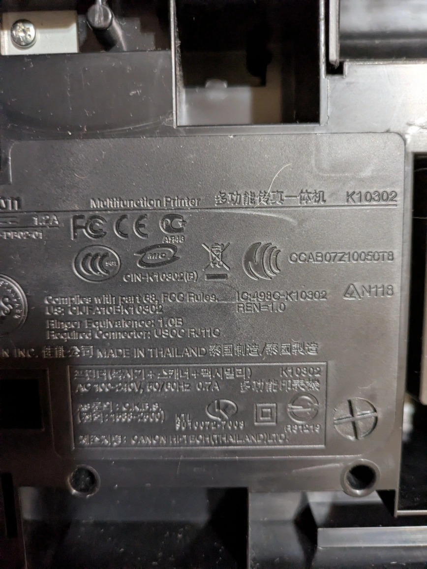 The Canon K10302 is a regulatory model number for a Canon PIXMA All-in-One printer/scanner/copier. This specific K-series identifier is often associated with the Canon PIXMA TS302 desktop inkjet printer, a compact, wireless device.