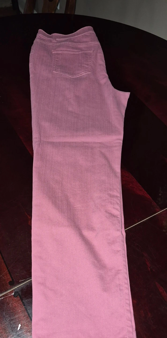 These ALIA women's pants are a lovely shade of pink. They're made from a comfortable blend of 73% cotton, 25% polyester, and 2% spandex. These would be great for casual wear or dressing up!
