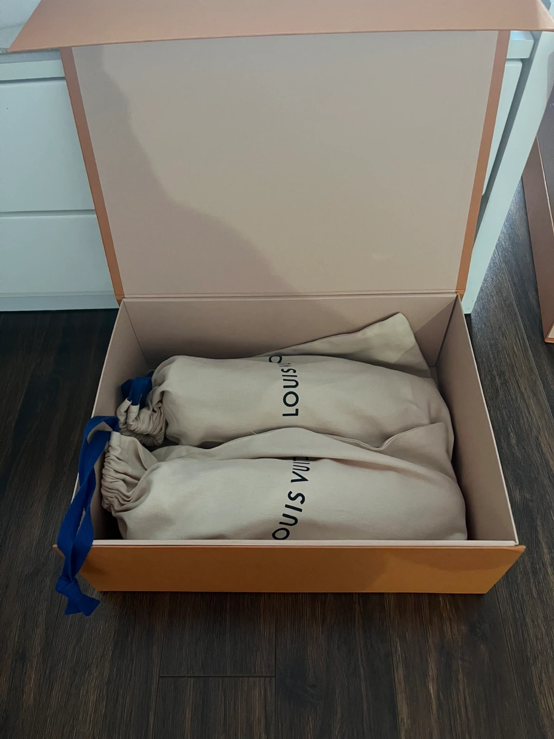Absolutely flawless condition — no creases, no wear, no marks, never tried on outdoors. Includes original box, extra lace and dust bags.