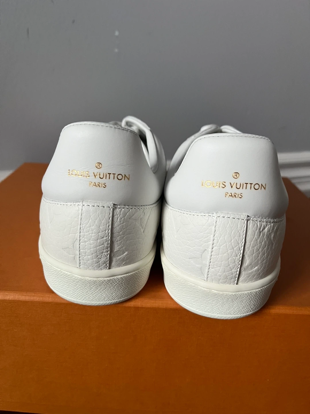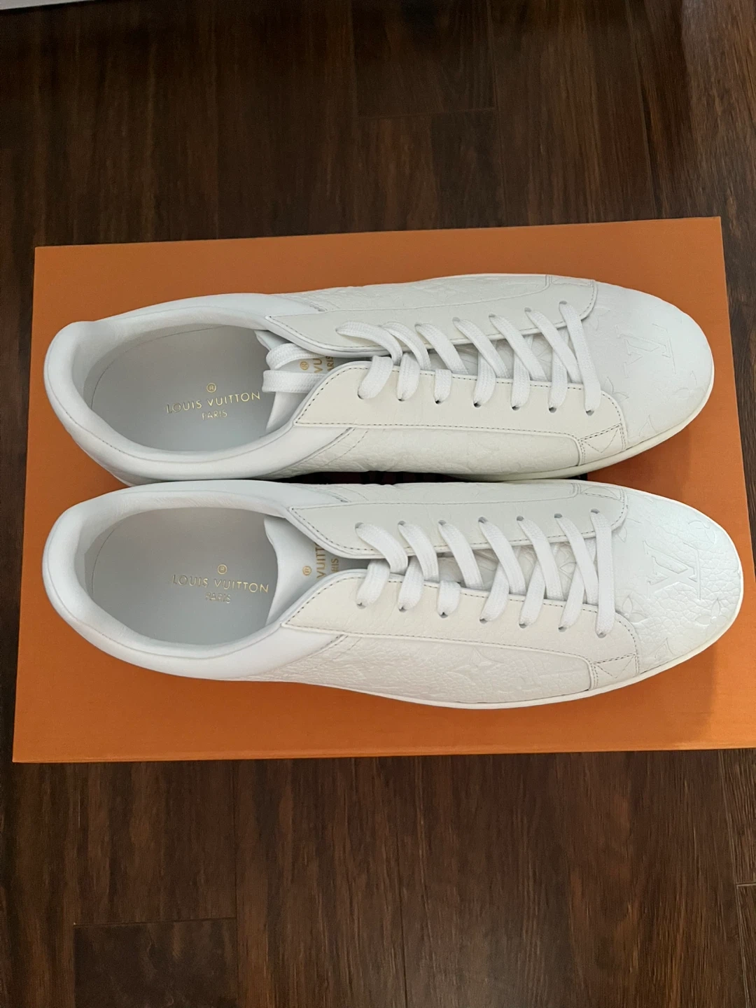 Brand new, never worn Louis Vuitton white Monogram-embossed leather sneakers