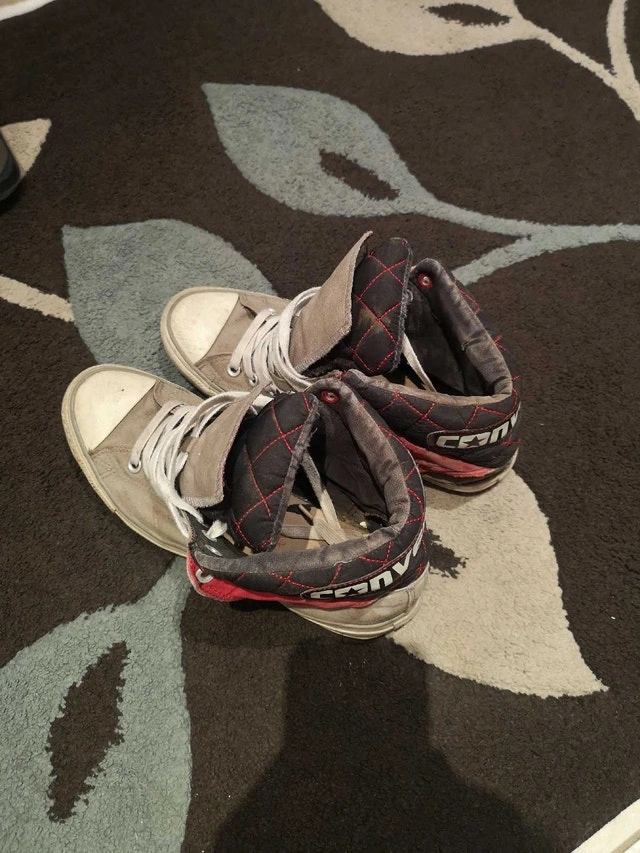 Selling a pair of Converse All Star sneakers, Size 10, in good condition. Classic look with a sharp color combo: white, grey, black, and red — easy to match with any outfit. Details: Brand: Converse All Star Size: 10 Colors: White / Grey / Black / Red Condition: Good – well taken care of Comfortable, lightweight & durable No major damage, lots of life left Great for everyday wear, school, or casual outings. From a smoke-free, pet-free home. Pickup preferred. Cash only.