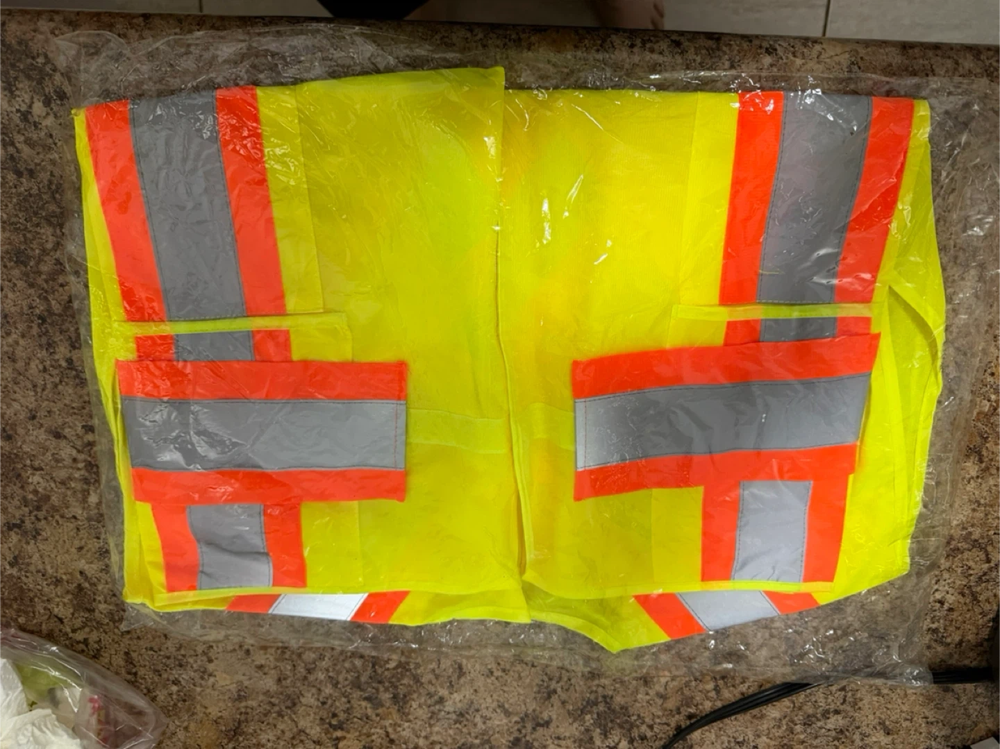 I'm selling a brand new Condor safety vest. It's bright yellow with reflective stripes, perfect for staying visible. Still in its original packaging!
