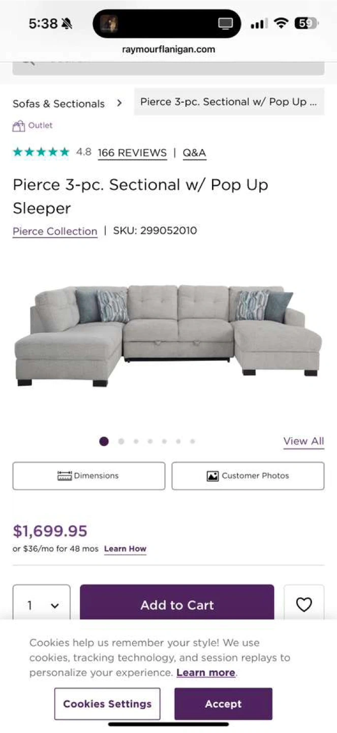 Pierce 3-pc. Sectional w/ Pop Up Sleeper Sofa