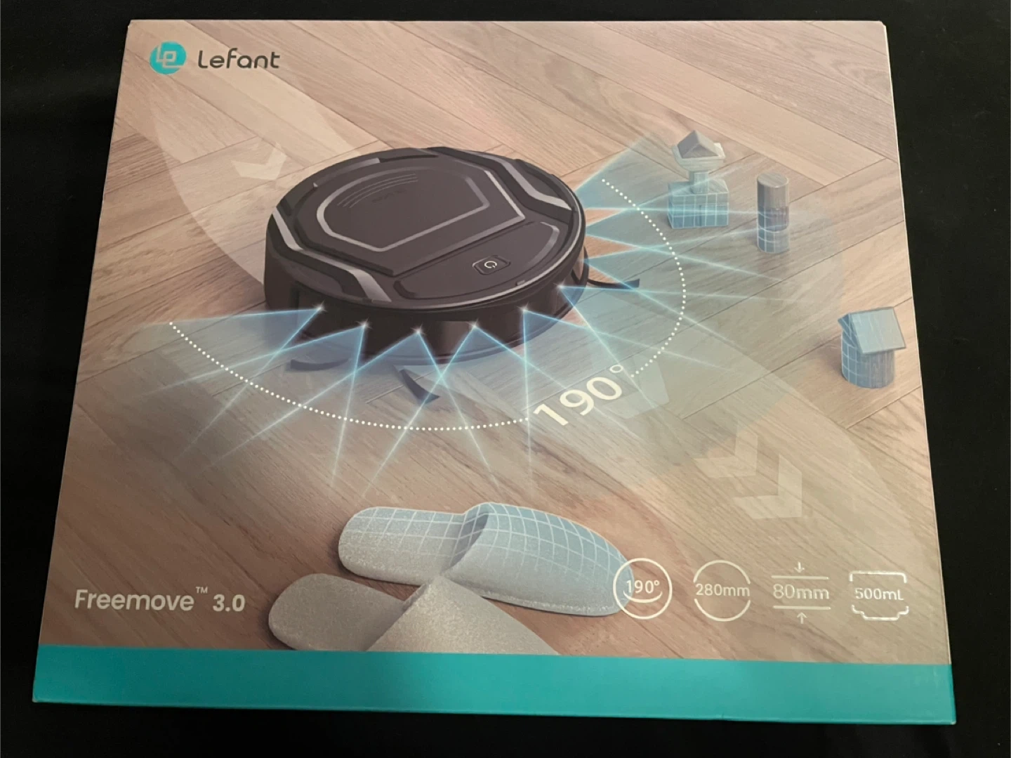 Won at a Christmas raffle - cannot use it due to pets. Lefant Freemotion 3.0 Robotic Vacuum Cleaner, model M210P. This robotic vacuum is 280mm in diameter and 80mm in height. It has a 500ml dustbin capacity. It's controlled via a smartphone app.