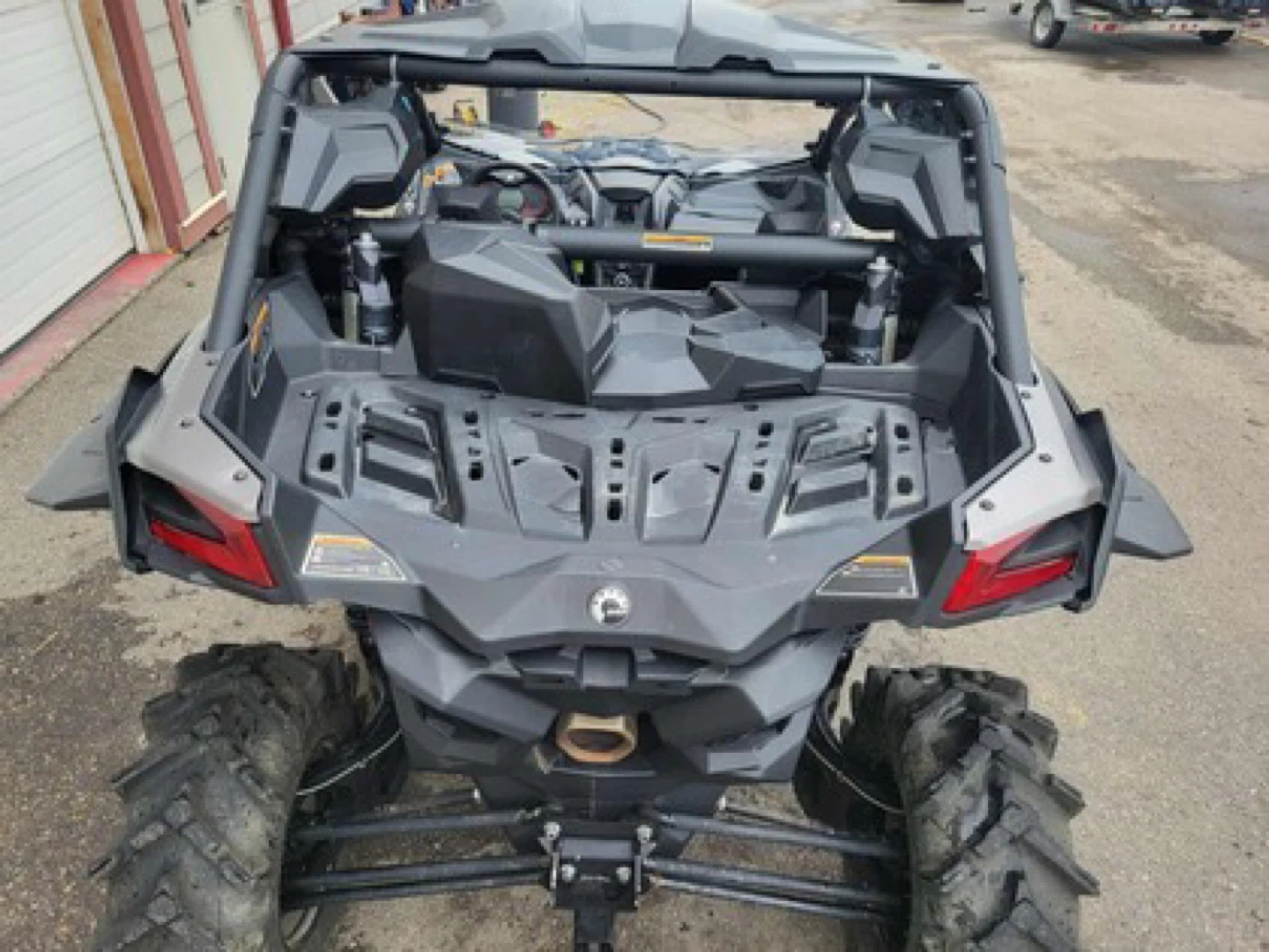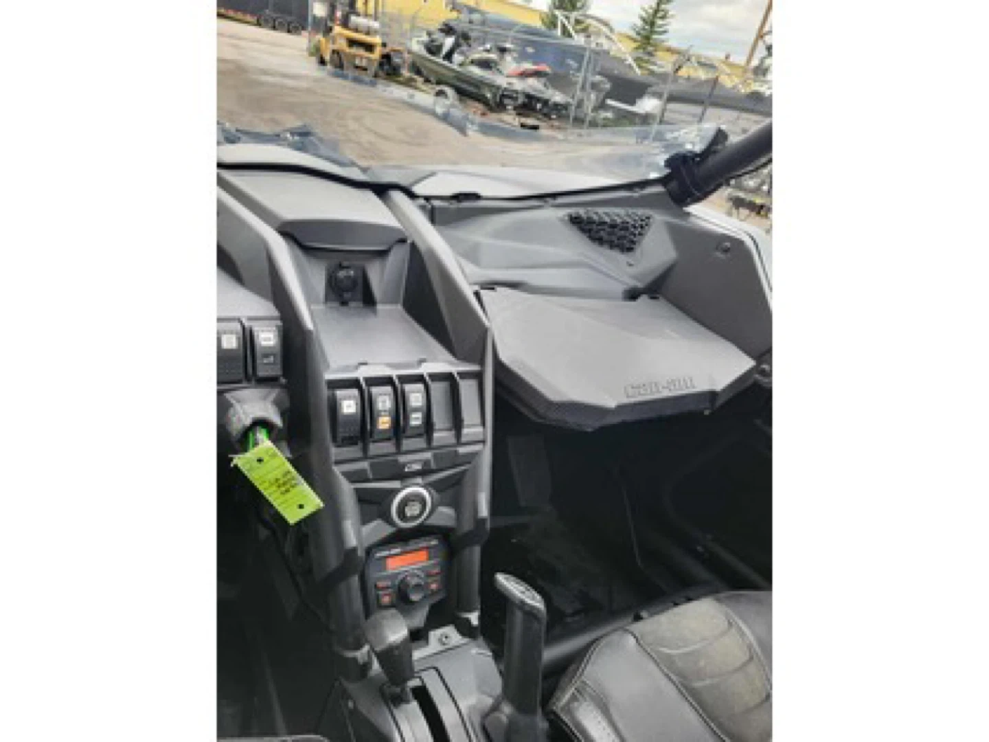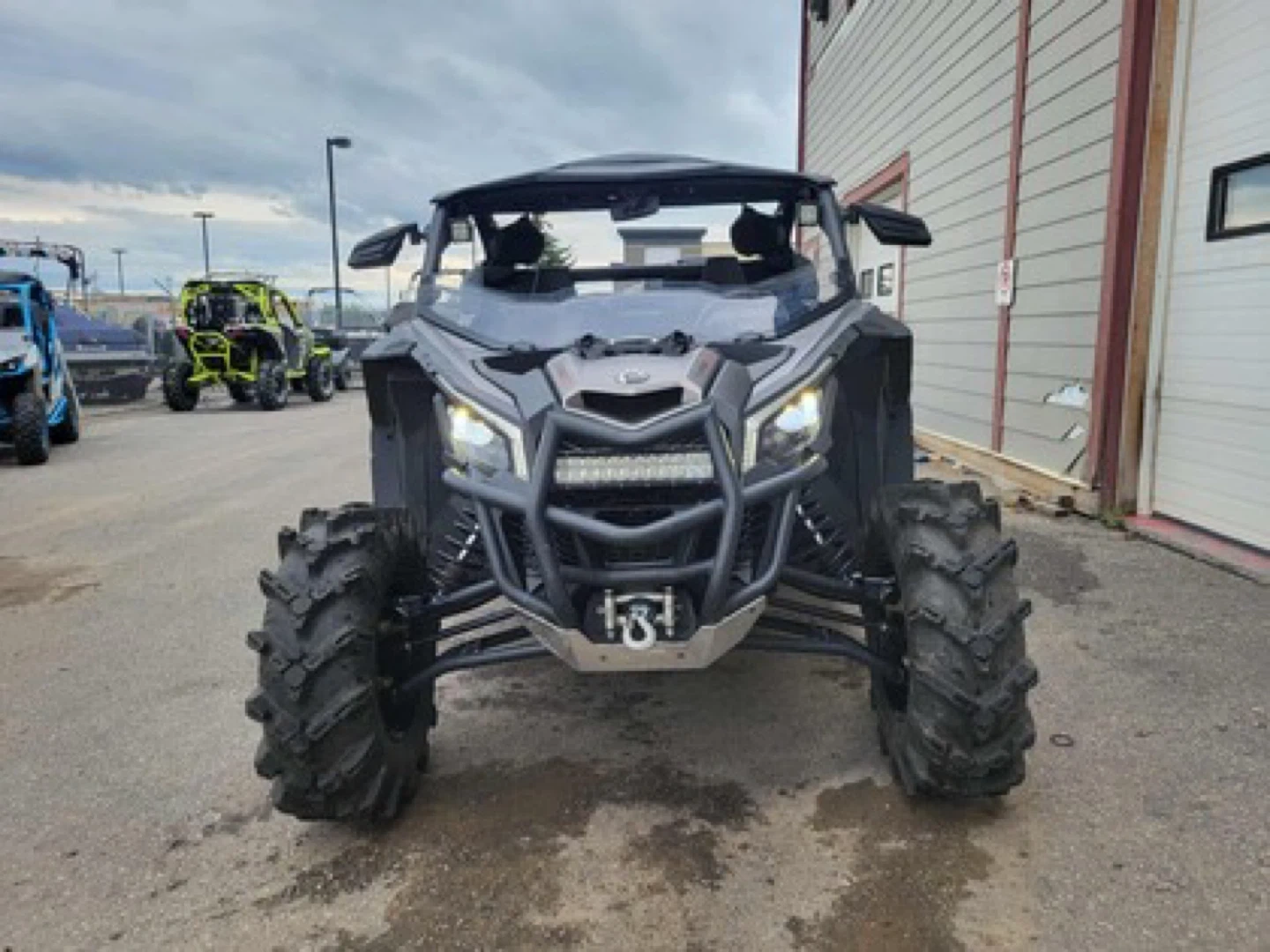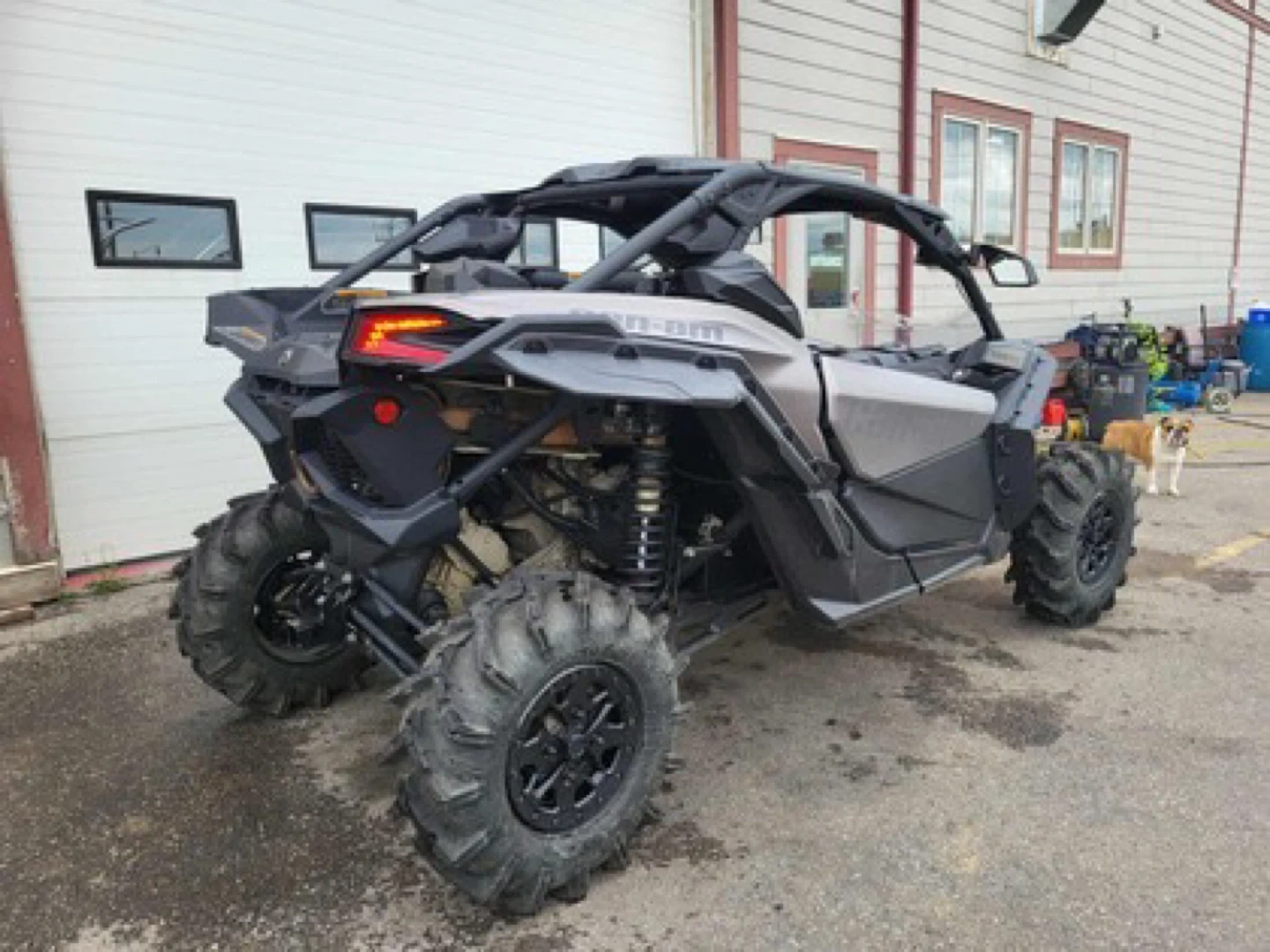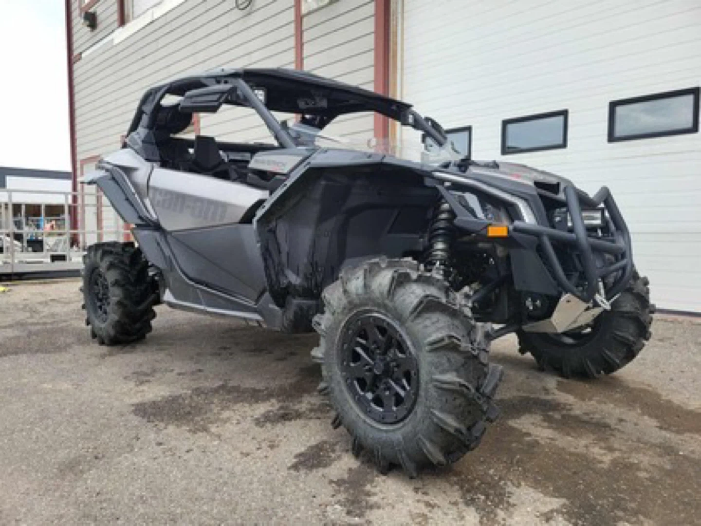This is a Can-Am Maverick X3 side-by-side vehicle. It's equipped with large off-road tires. Features a rugged design suitable for challenging terrain. Perfect for off-roading adventures!