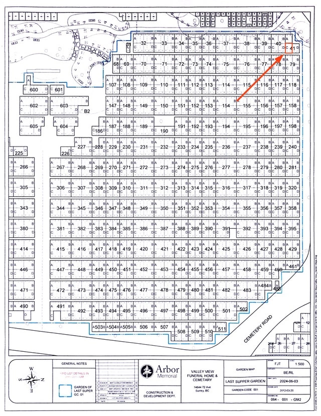 Two traditional cemetery plots for sale in Valley View Cemetery, Surrey, in the Garden of the Last Supper. Each single-depth space is suitable for a full traditional burial with one casket, plus capacity for up to two additional cremation internments, making it ideal for companions. The plots are located on the edge of the garden near the cemetery road, offering easy access. Ideal for those planning ahead for side-by-side plots in a peaceful, established cemetery in Surrey, BC. Garden: Garden of the Last Supper. Location: Section 41, Plot C1. Price: $15,000 for both plots. Each plot can accommodate: 1 casket, and up to 2 urns. For Sale By: Owner.