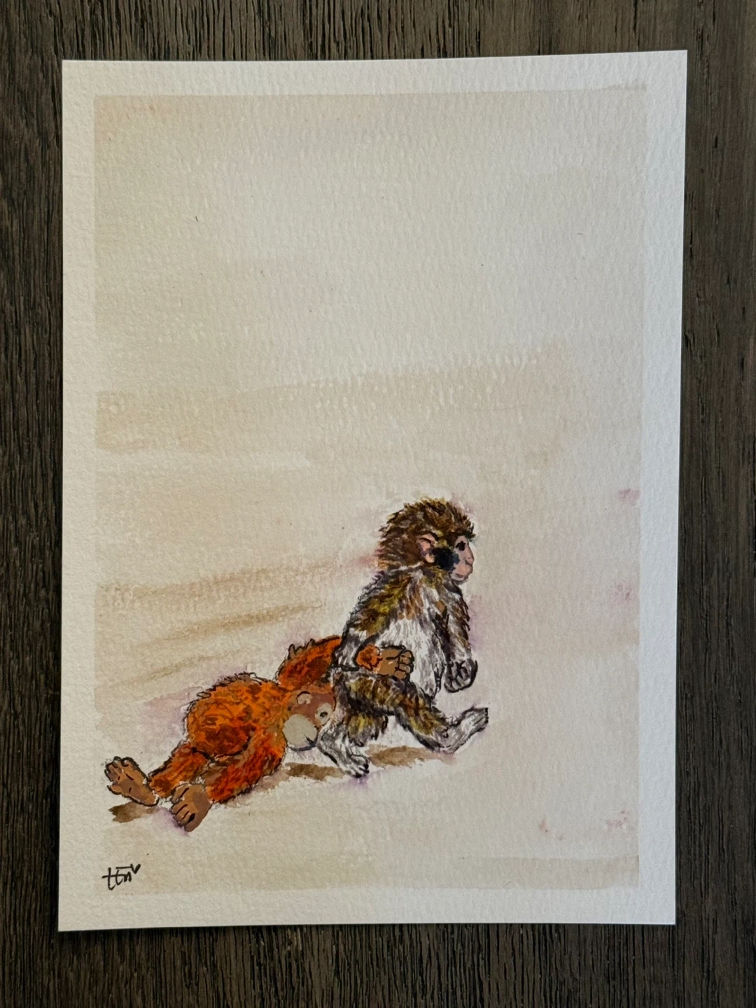A mixed media art (Ink, Acrylic & Watercolour) on 5”X7” 300gsm watercolour paper (unframed) featuring sweet little Punch, the monkey with his Ikea buddy. This artwork is entitled, “Keep Going” depicting Punch in a forward motion carrying along his friend. I’ve been enjoying making Punch art because Punch’s story really touches so many people in different ways. Perhaps in the way we can empathize with Punch in our own way. Keep going…this art carries the message of not giving up… keep looking forward and keep going. This is not a print. The artwork is signed in the lower right corner.