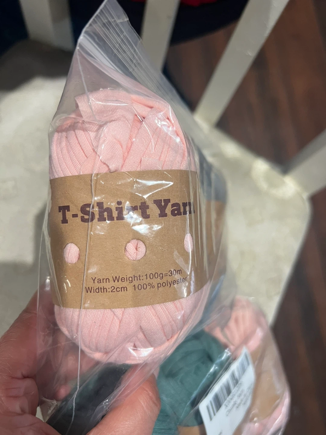 Set of 6 rolls of chunky t-shirt yarn. Includes pink, grey, and green colours. Each roll is 100g and approximately 30m long. Made from 100% polyester. Great for knitting or crochet projects!