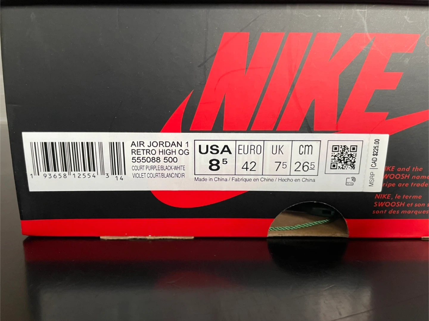 - Air Jordan 1 Retro High OG sneakers in Court Purple