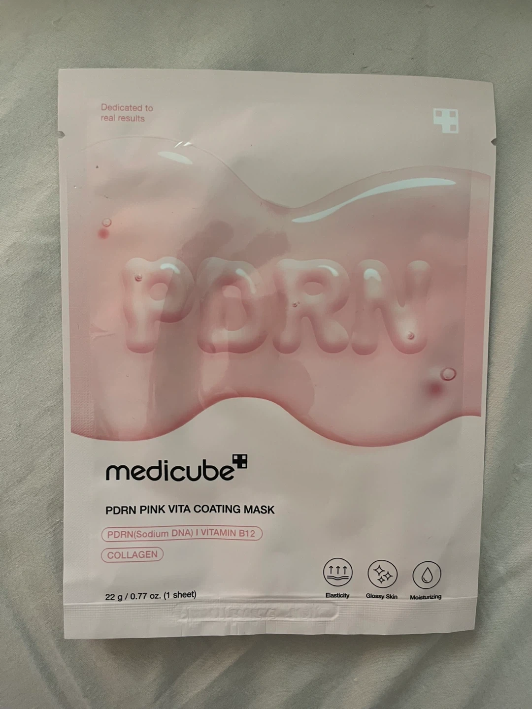 I'm selling a Medicube PDRN Pink Vita Coating Mask. It contains PDRN (Sodium DNA) and Vitamin B12, as well as collagen. This mask helps with elasticity, gives you glossy skin, and moisturizes your face