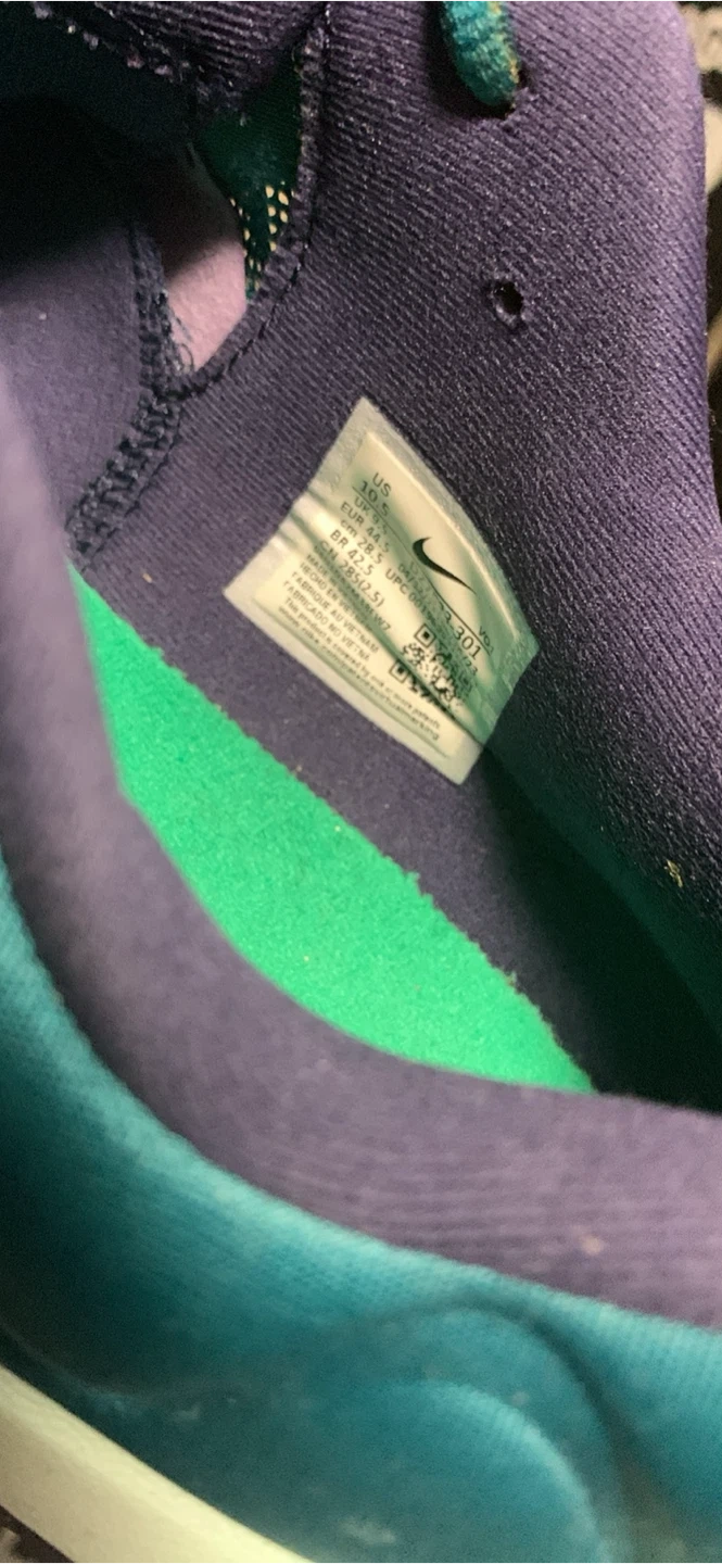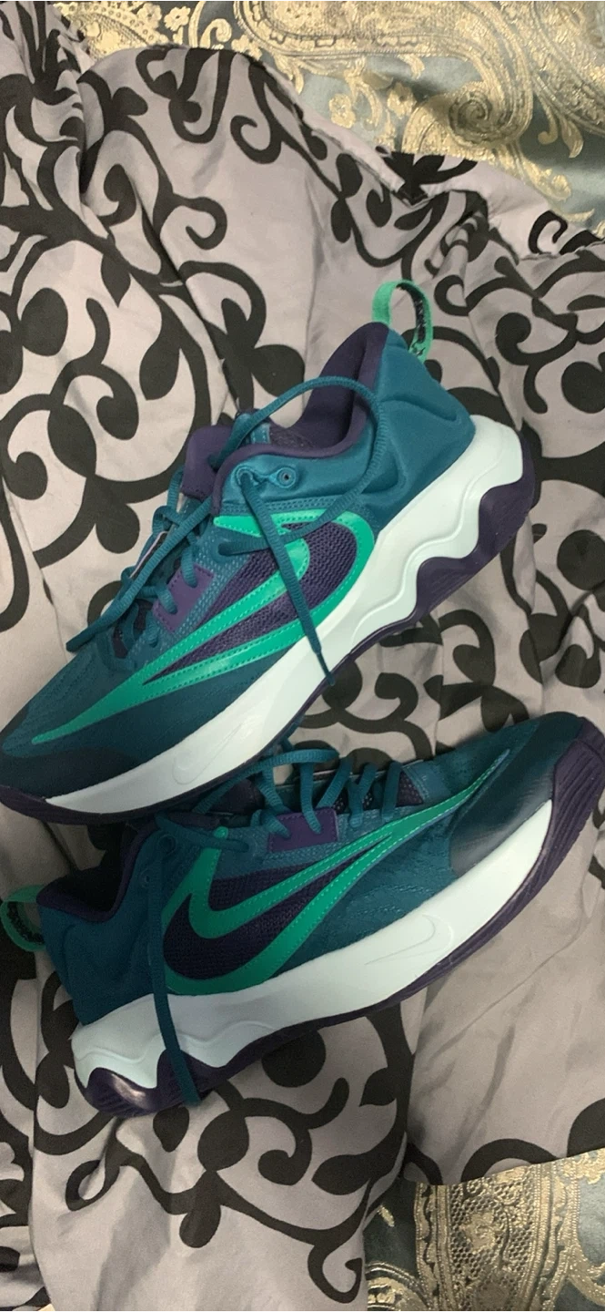 Selling a pair of Nike Freak 5 basketball shoes in size 10.5. The shoes feature a teal and purple colour scheme. Great for on the court or casual wear!