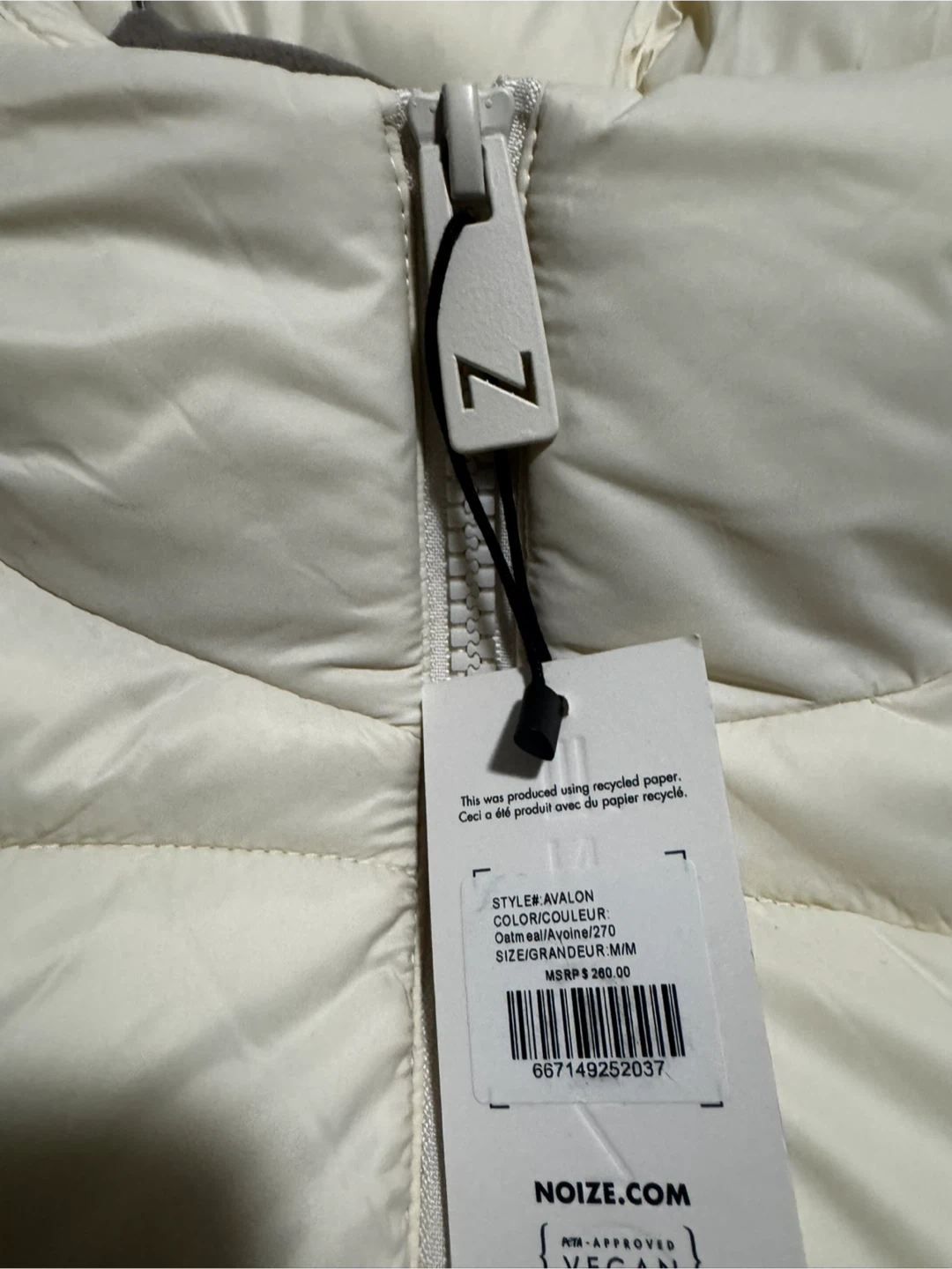 Selling a brand new Noize “Avalon” puffer jacket in women’s Medium (M/M), colour Oatmeal (off‑white). Tags are still attached and it’s never been worn. Original retail price was $260 plus tax.