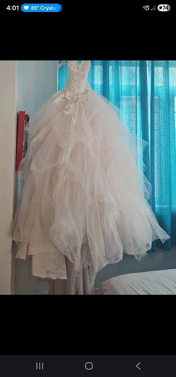 Selling an Allure Romance wedding dress in size 8. It's made with lace and polyester for a beautiful look. The style number is 3067. It's in great condition and ready for your special day!