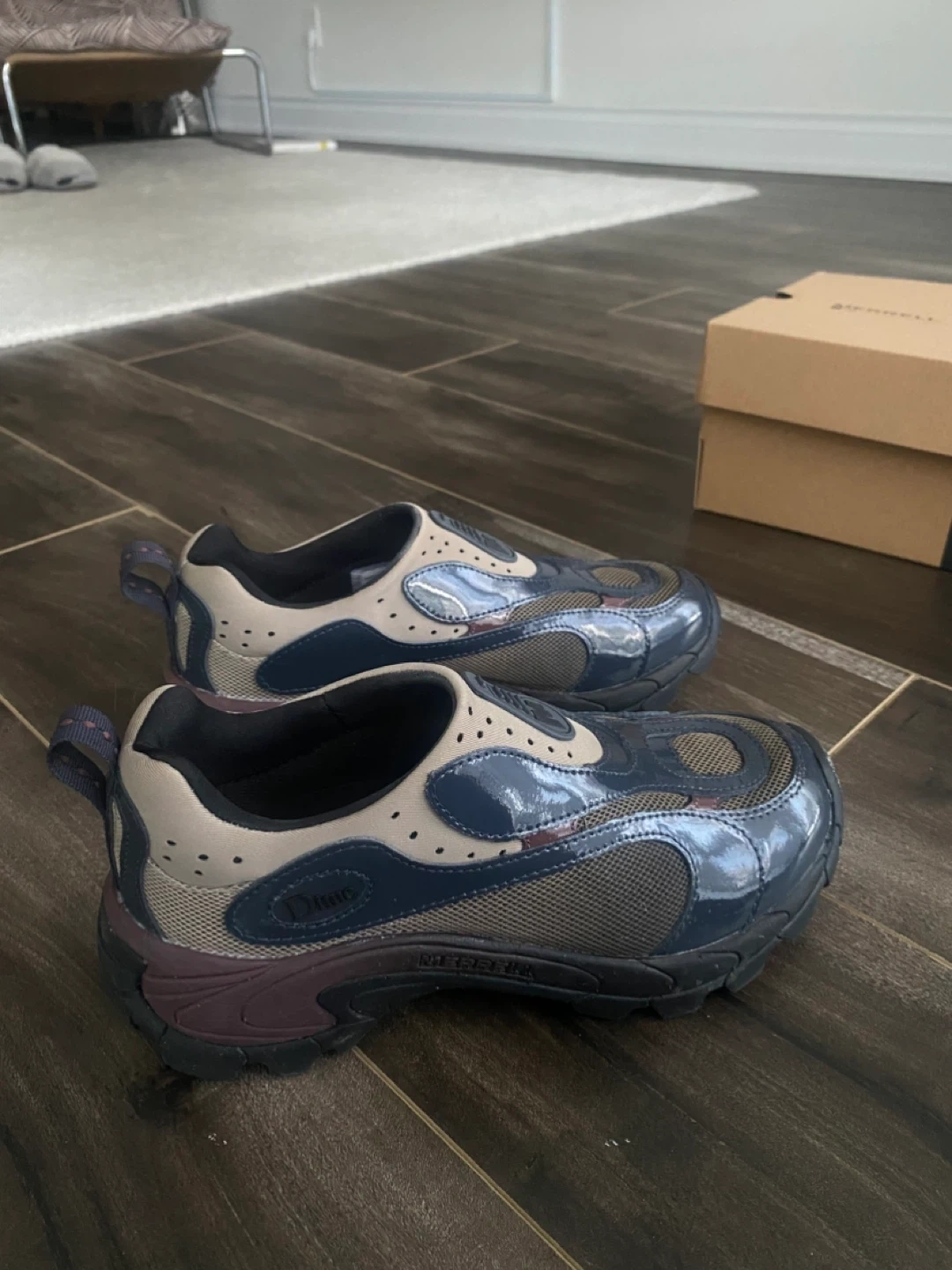 Dime x Merrell 1trl speed mocs in a tan and navy colourway. Includes original box. Only wore them once 🥲