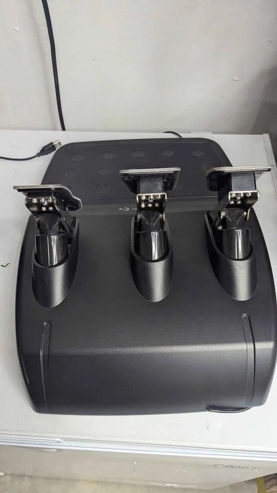 Steering wheel and pedals. Tested on PC and working perfectly. Product states compatibility with PlayStation, PC, and Xbox. I cannot guarantee it works on PlayStation. See last photos for two small spots of damage on the steering wheel. This does not affect use, but I want you to see the damage before pickup.