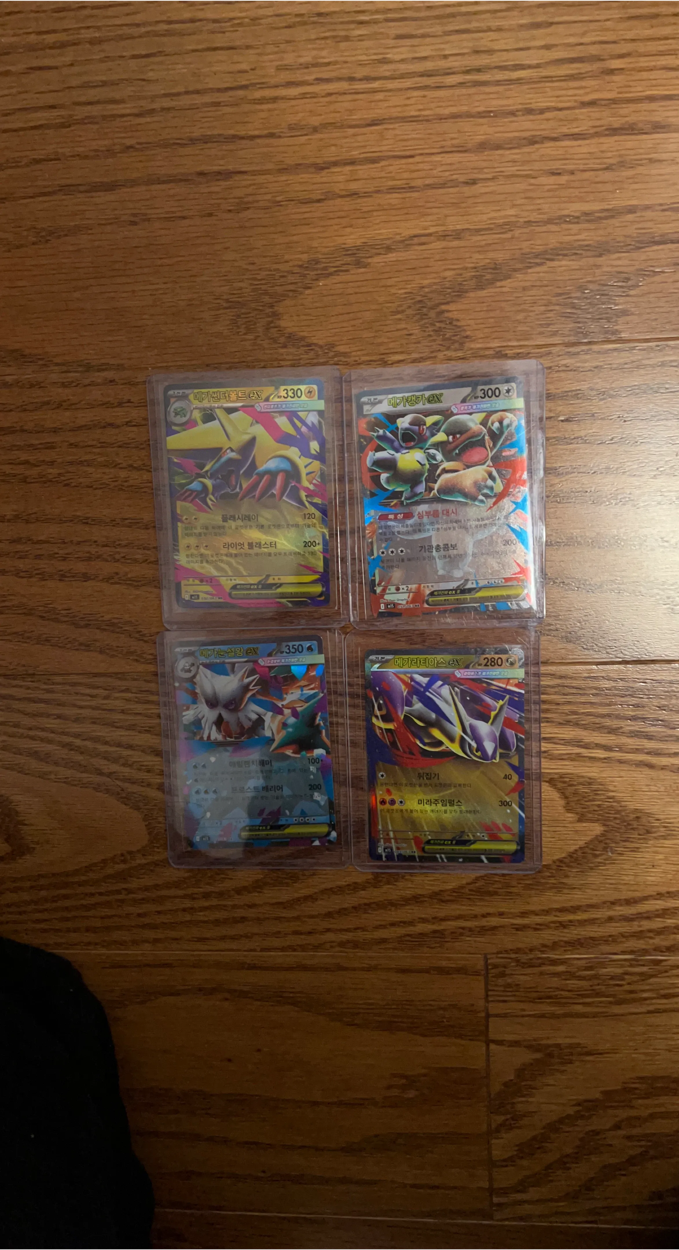 Brand new pulls. Lot of four Pokemon EX trading cards, including M Aerodactyl EX, M Kangaskhan EX, M Abomasnow EX, and M Latias EX. These cards are in protective sleeves. Both in hard and soft sleeves.