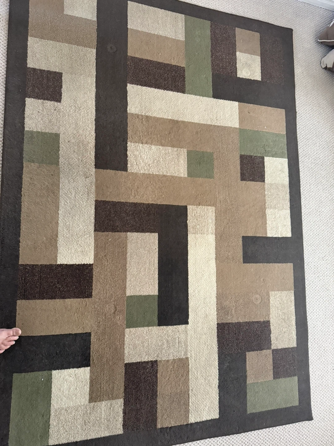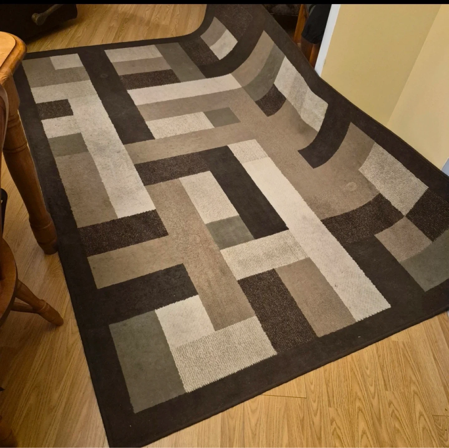 90” X 64” Geometric pattern area rug in earth tone shades. Adds a modern touch to any room. Great condition has been used in low traffic area.
