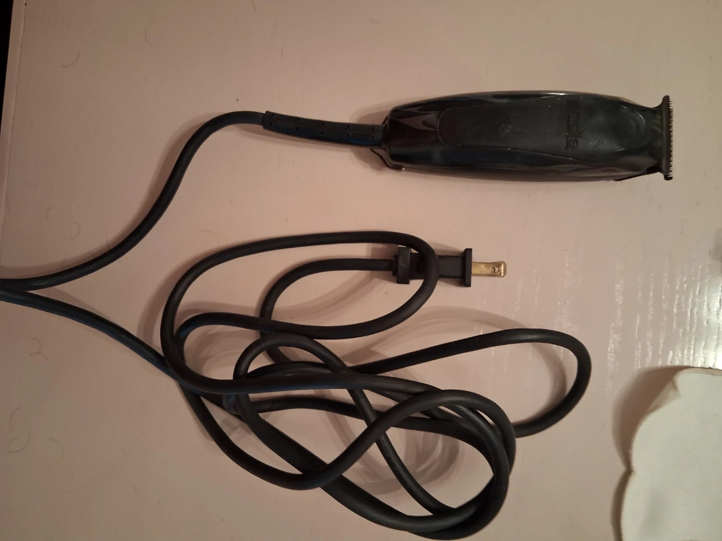 It's an Andis corded hair trimmer. It's black and has a power cord with a standard plug. Great for at-home haircuts!