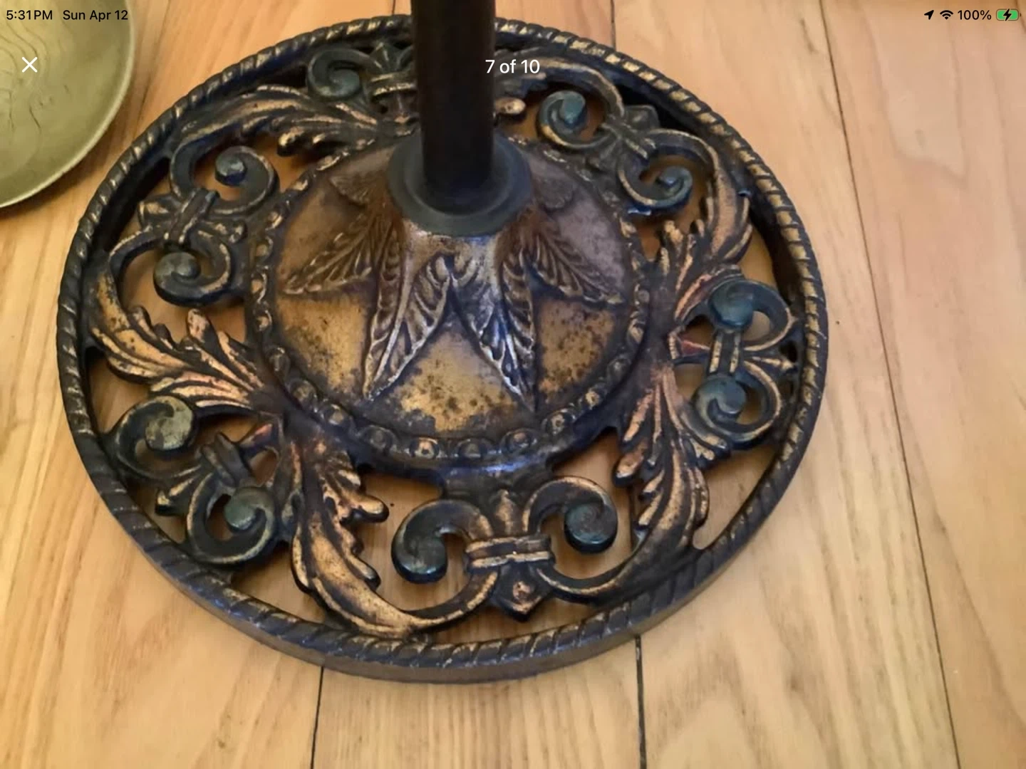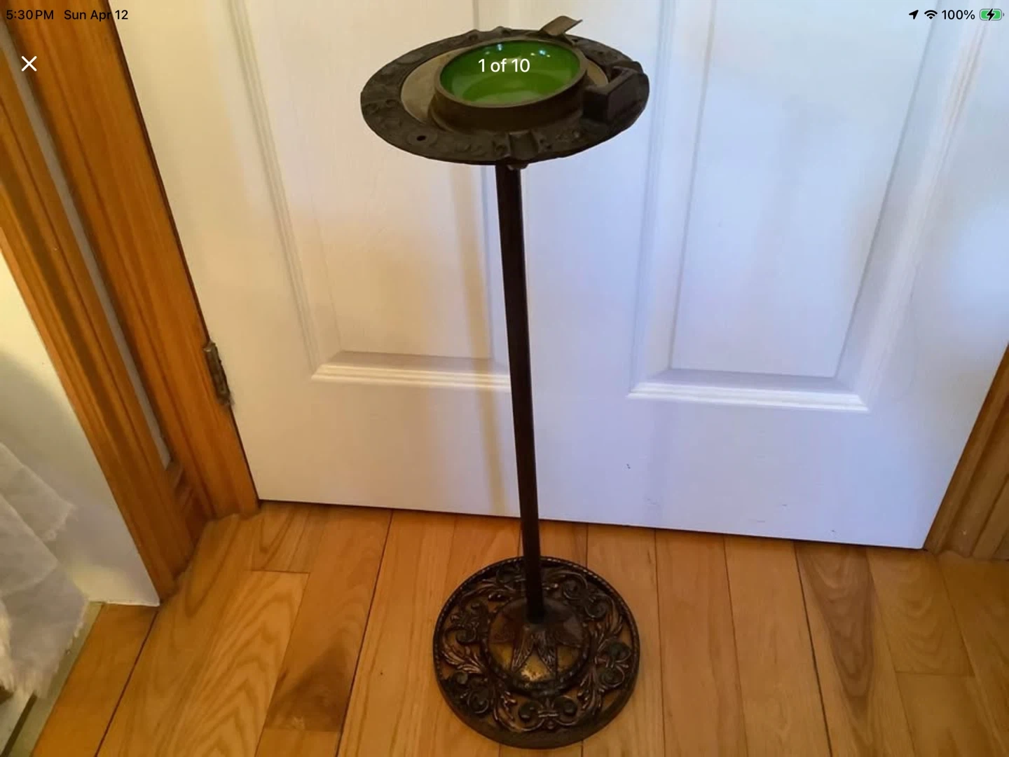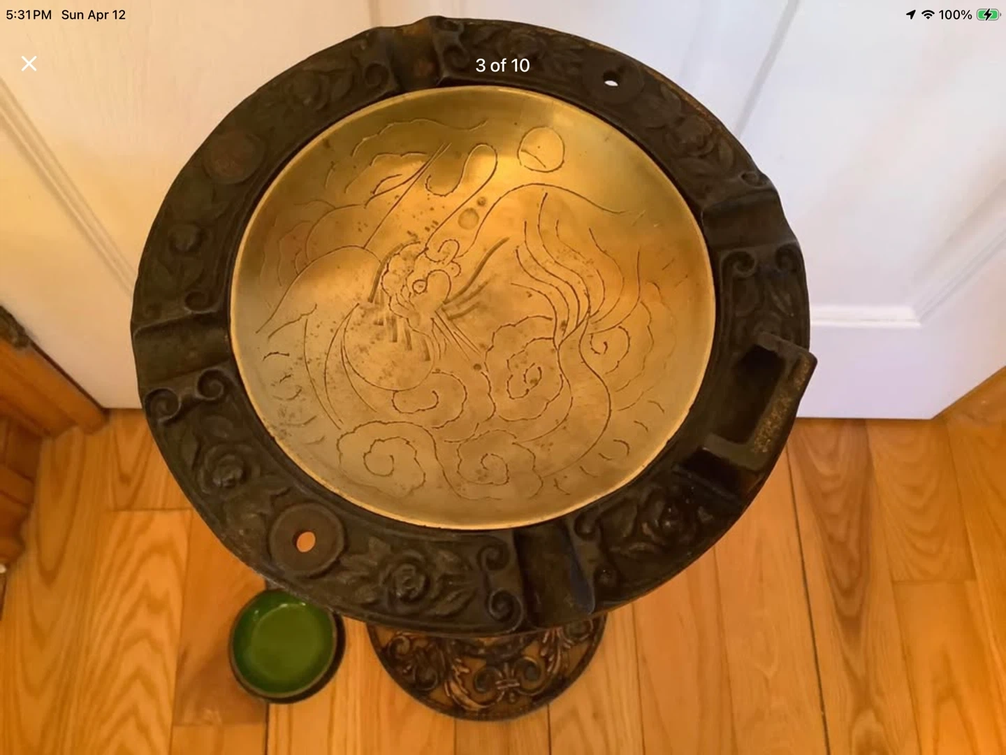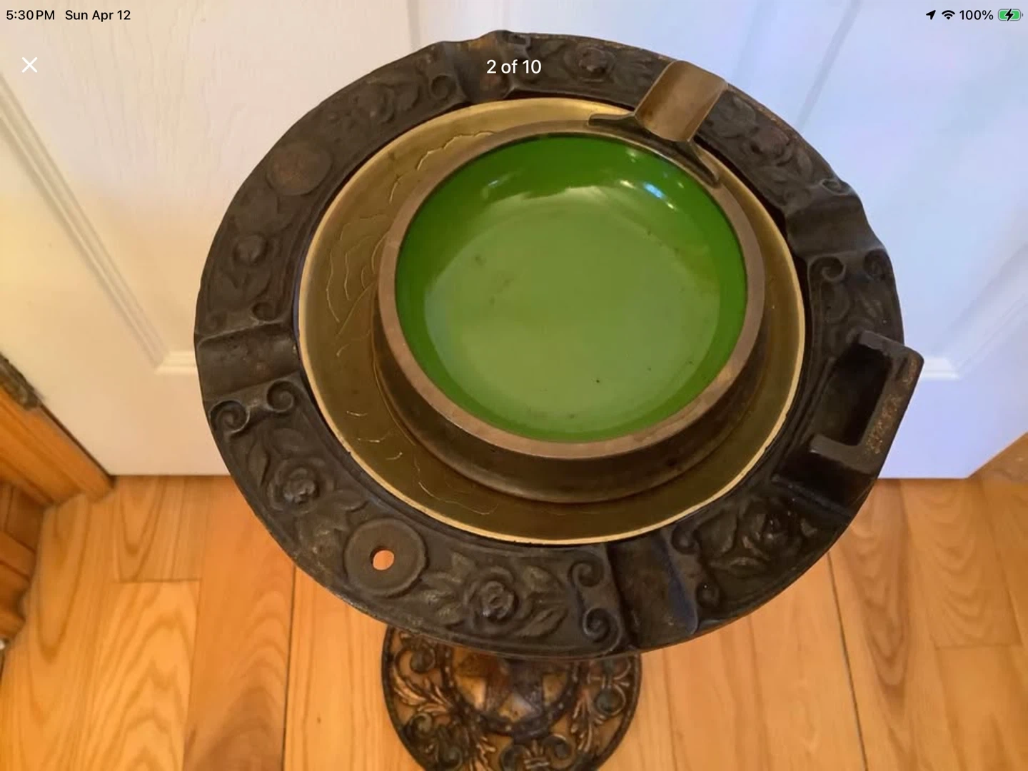 Beautiful ornate design and detail to the brass piece on the top of the ashtray, rim and the base stand.
