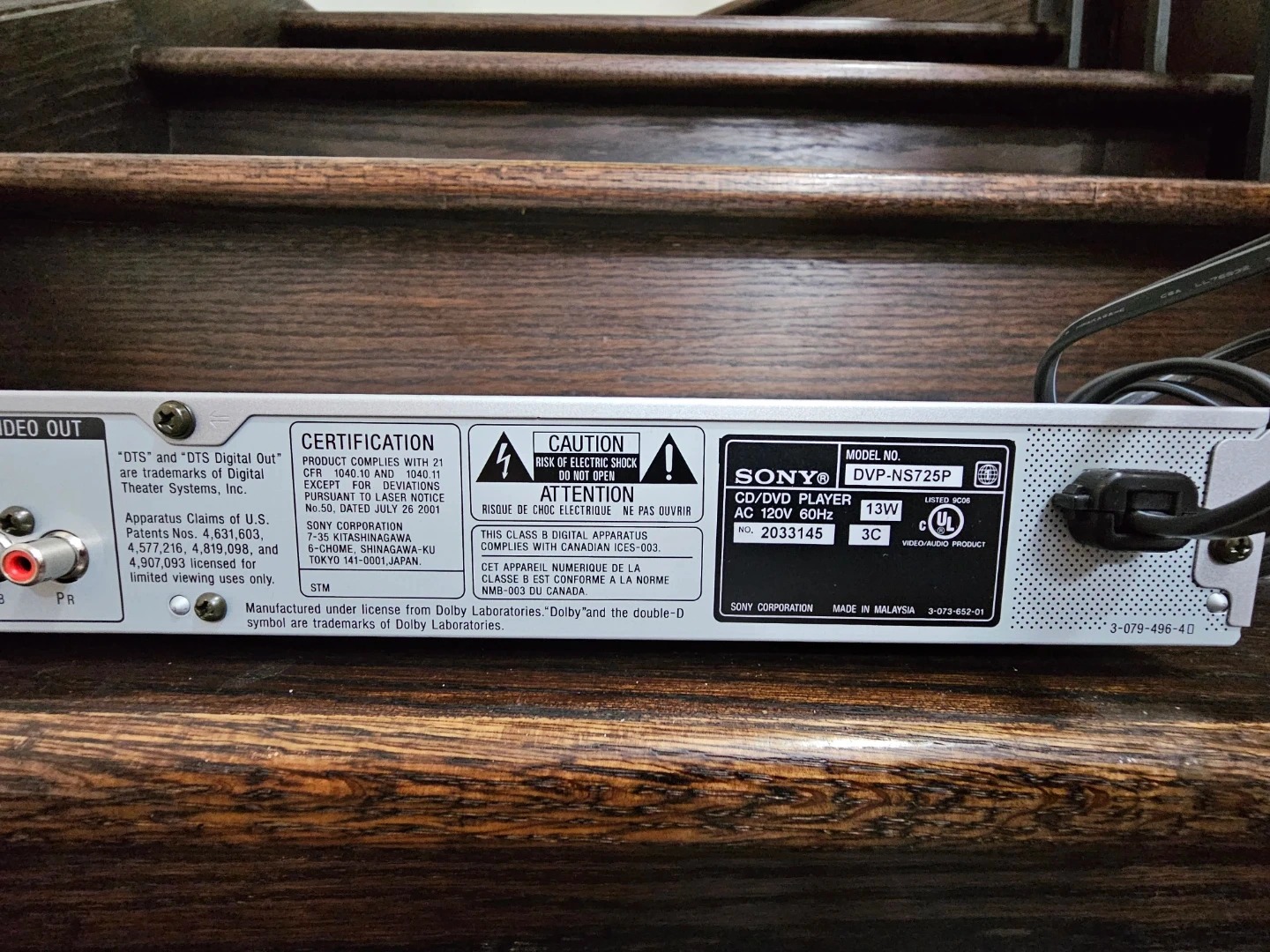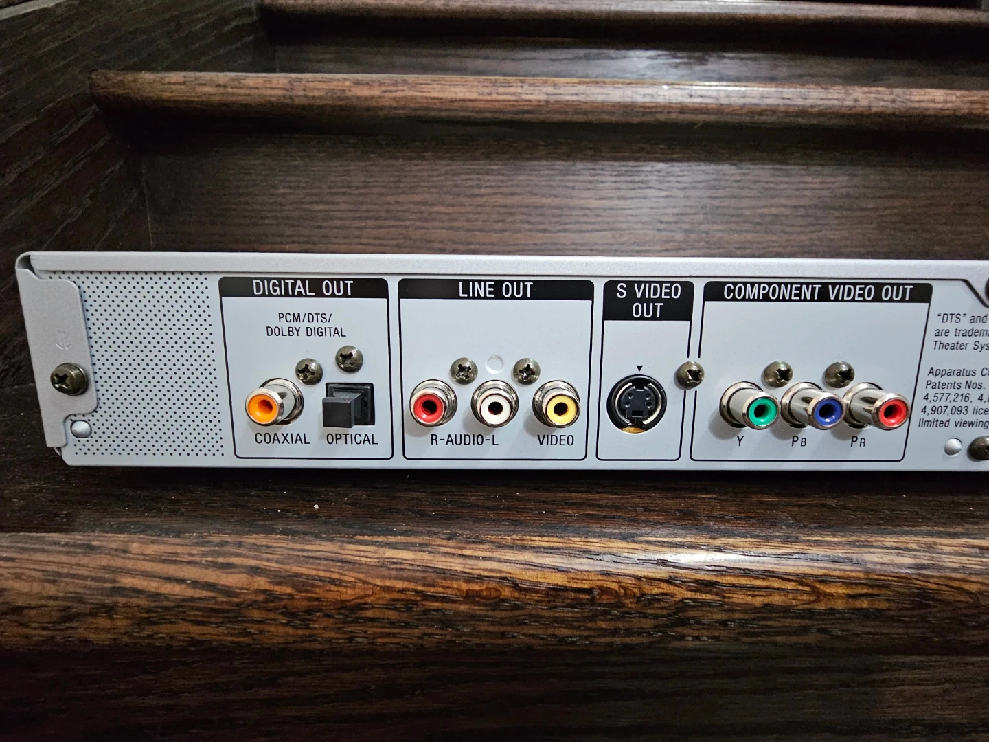 Sony CD/DVD Player DVP-NS725P. Progressive scan and Precision Cinema Progressive. Includes digital out, line out, S-video out, and component video out.