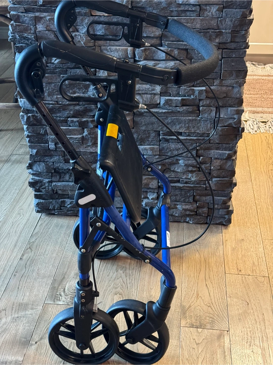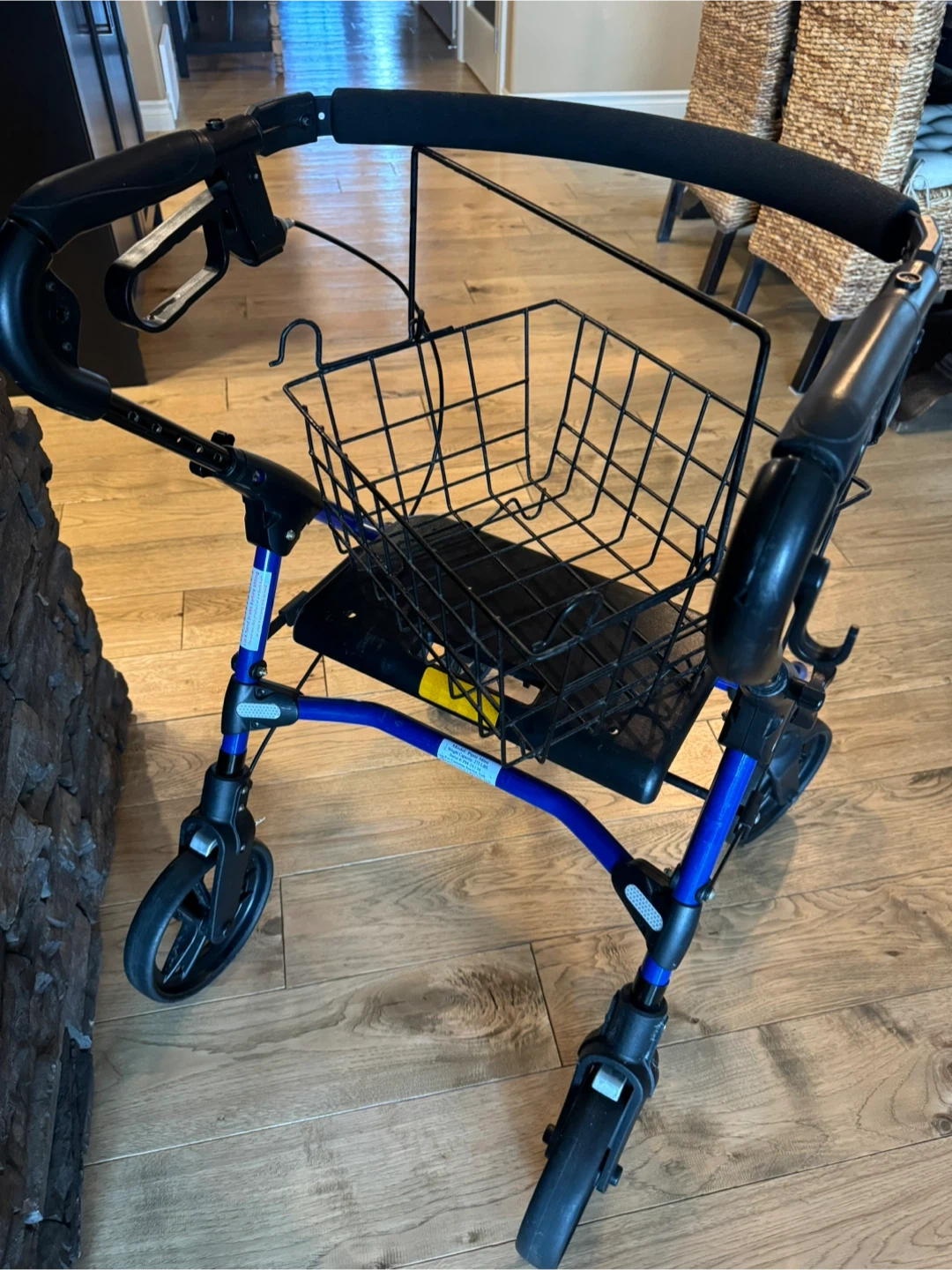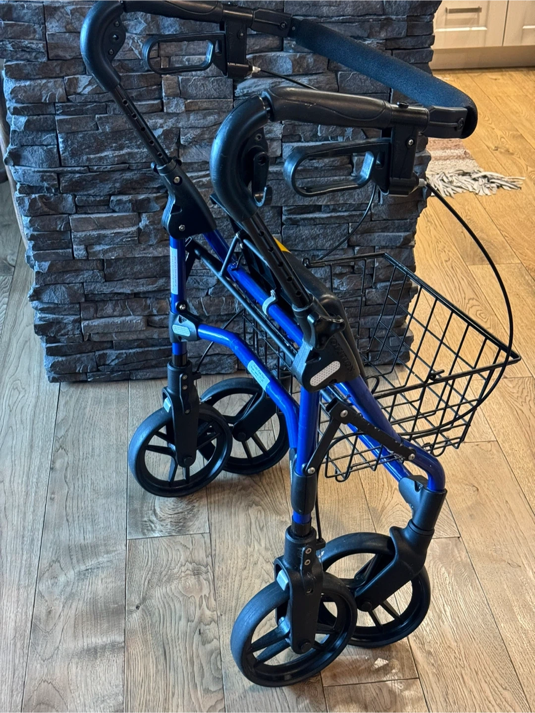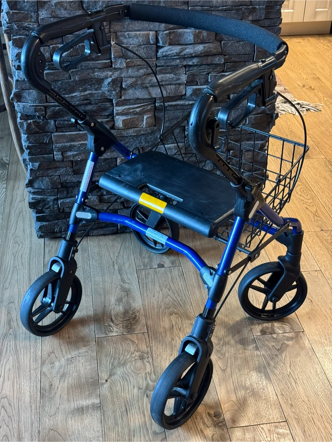 ONLY $195. EVOLUTION PIPER MINI FOLDABLE WALKER …holds up to 275 lbs…handle height adjustable …removable basket with handle …blue …in great condition…solid seat