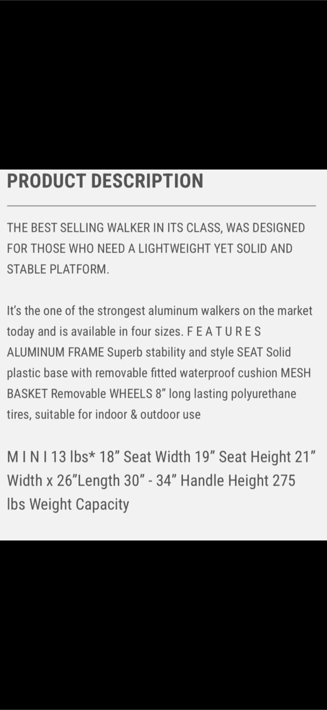 EVOLUTION PIPER MINI WALKER $195 holds up to 275 lbs