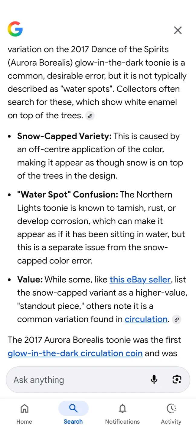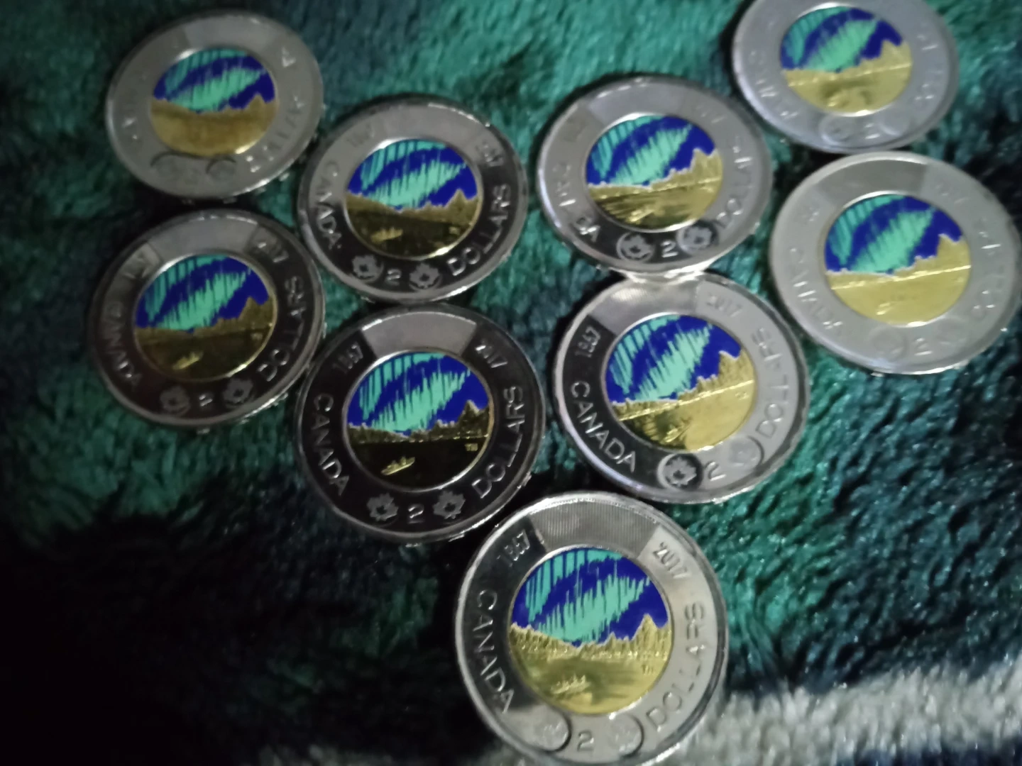 This listing is for a ten 2017 Canadian $2 coins featuring the Aurora Borealis. These coins are part of Canada's currency. They're great for collectors or as a unique keepsake from Canada. Yes that is one snow capped! All are uncirculated! Let's hear some offers.