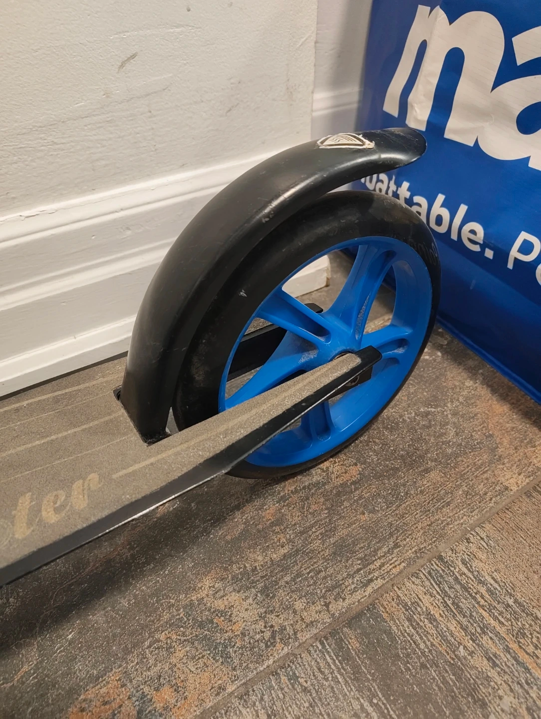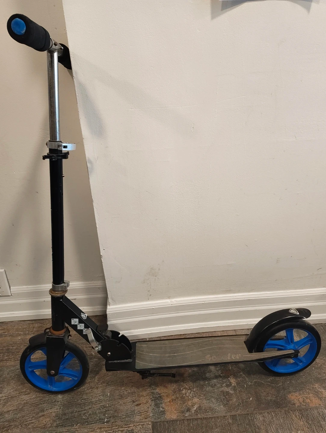 Selling a Gedouner scooter in black and blue.