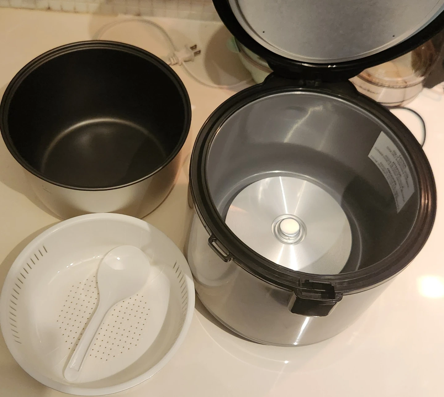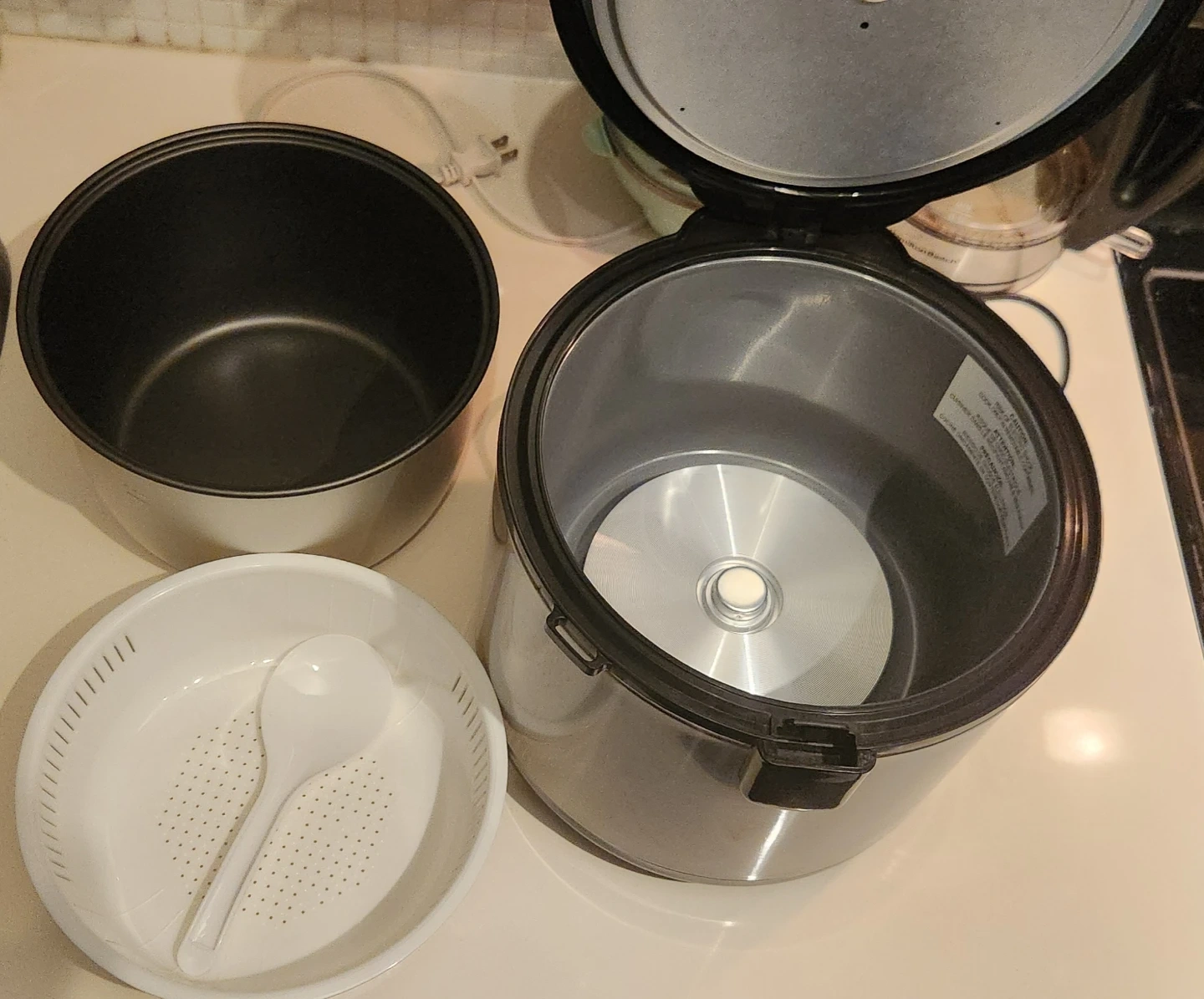 It can cook white rice, whole grains, hot cereal, and steam vegetables, seafood, or other foods. The nonstick pot is large enough to feed your whole entire family! It features preprogrammed options to take the guesswork out of cooking. The delay start function allows you to prepare cooking up to 15 hours in advance. The cooker automatically switches to a keep warm function once cooking is complete. It is available now for 25$ and it is good condition.