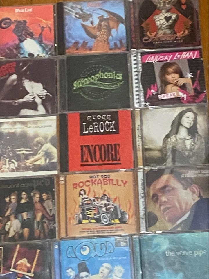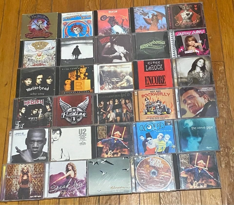 All in great working condition! Immerse yourself with these gems! $10 per cd, all curated to taste! Features: Pop, Rock, Rockabilly, Hip Hop, Thrash Rock, Country, Techno, Psychedelic Rock, pop punk and punk albums!