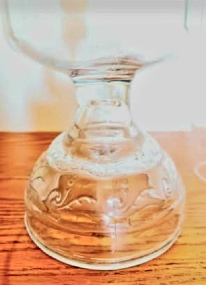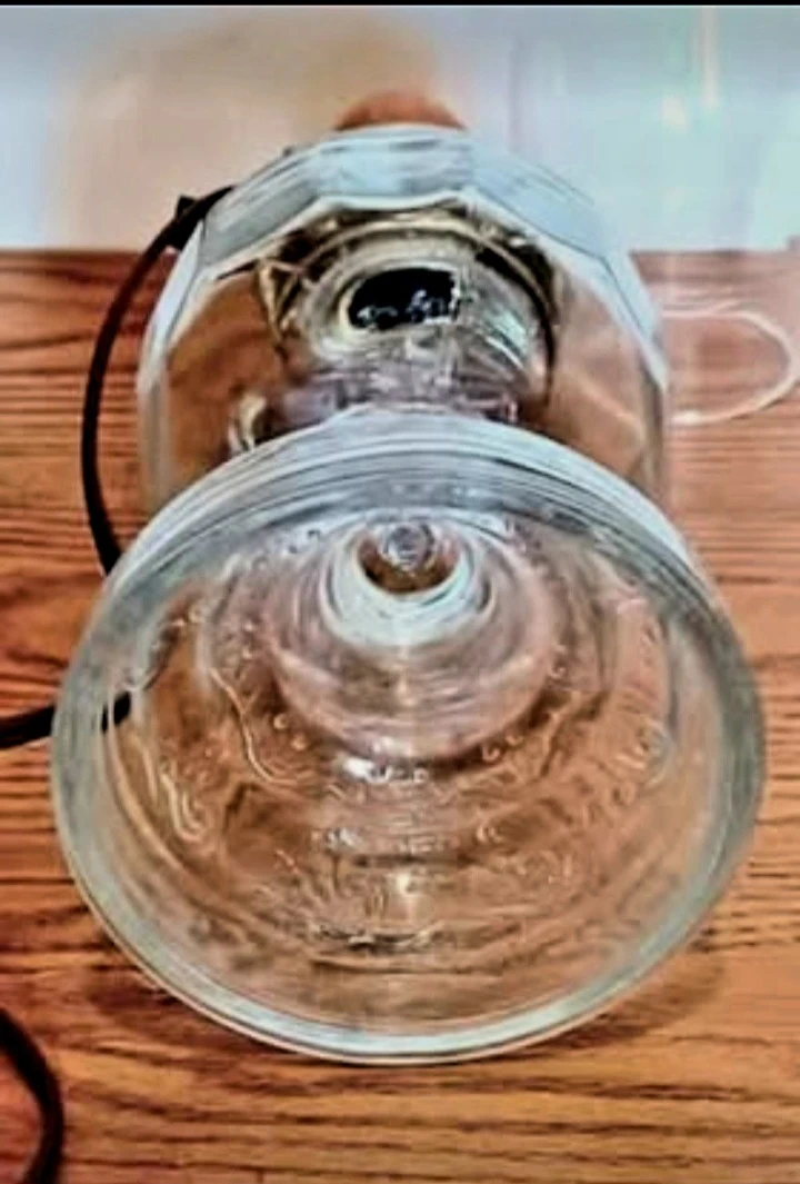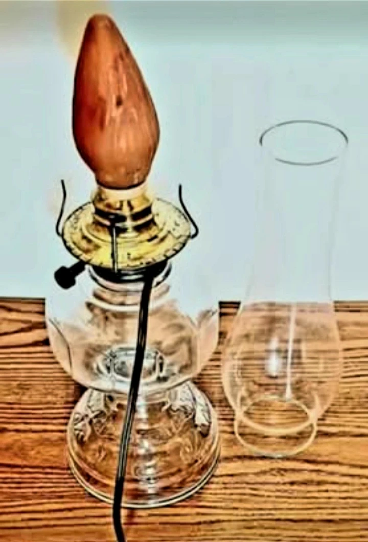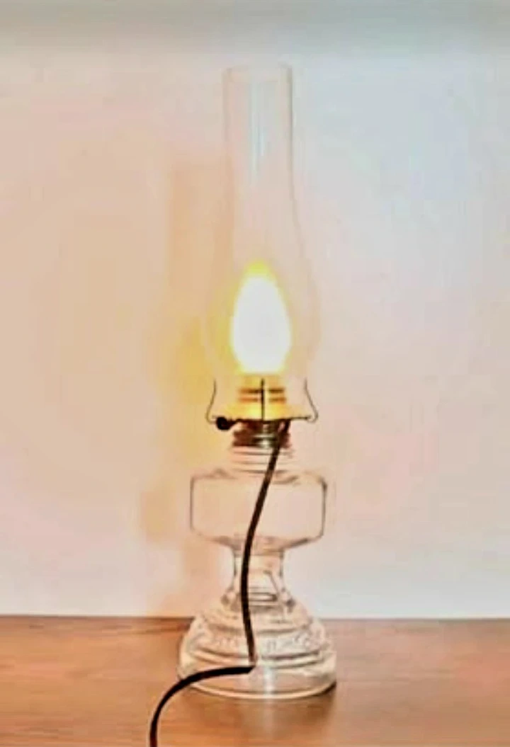 Brighten up your space with this tall, textured glass electric oil lamp! This lamp is in excellent condition and has a lovely decorative pattern on the glass base. It provides a cozy and inviting glow, perfect for any room.