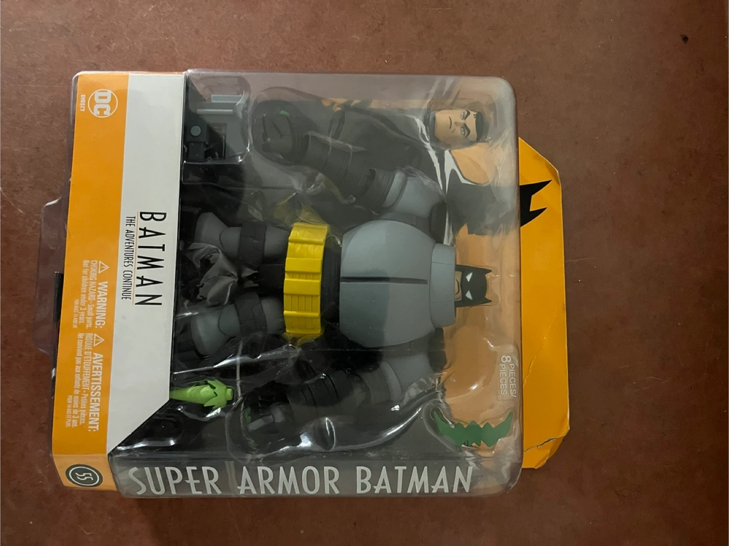 This is the Super Armor Batman action figure from DC Comics, part of The Adventures Continue line. It comes with 8 pieces. A great collectible for Batman fans!
