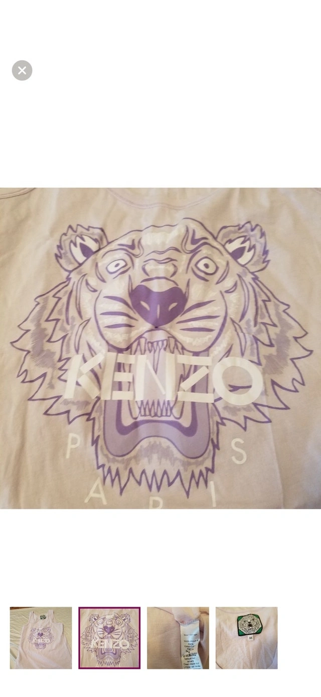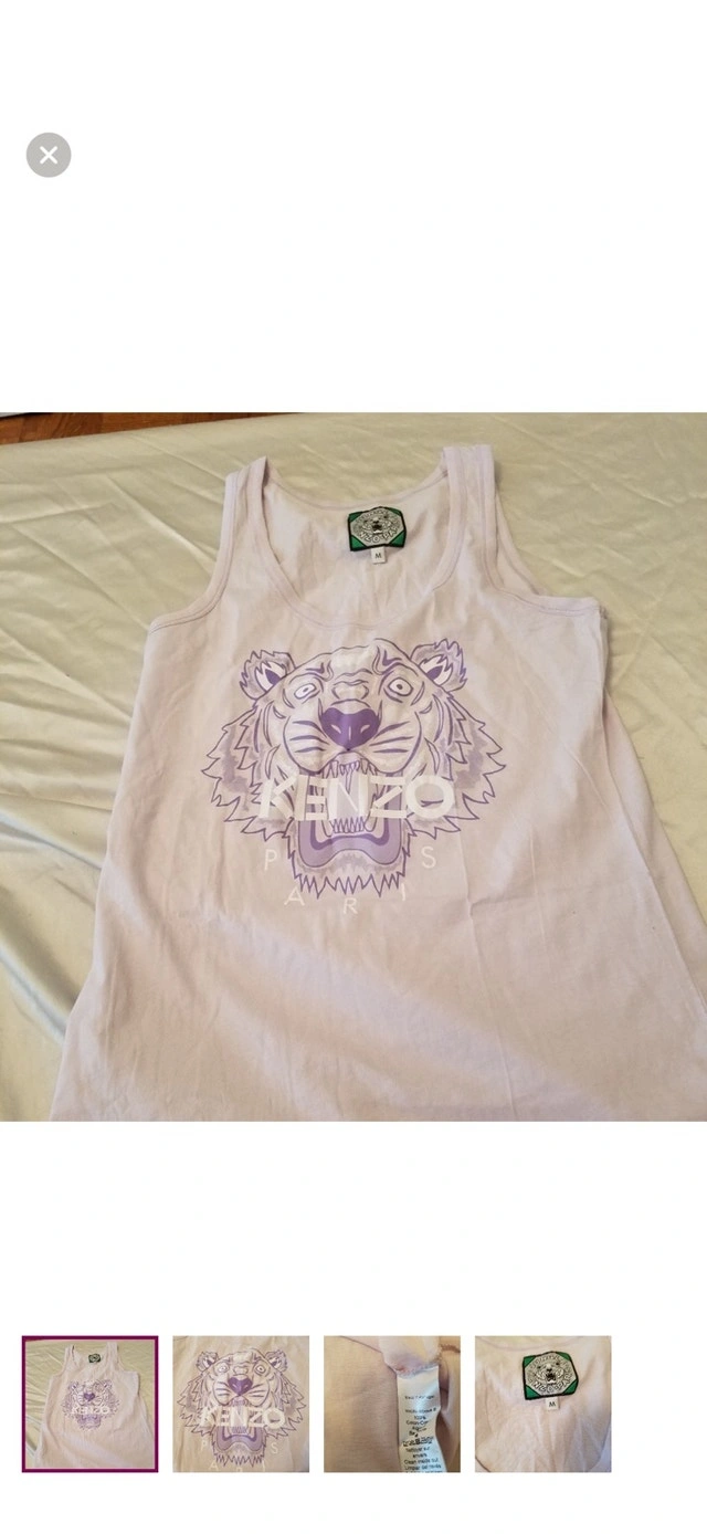 This is a stylish, gently worn Kenzo tank top, perfect for adding a touch of designer flair to your casual wardrobe. The shirt features the iconic Kenzo tiger logo in a cool, lavender hue. The fabric is soft and comfortable, ideal for everyday wear. Specifications: Brand: Kenzo, Size: M, Colour: Lavender, Material: 100% Cotton, Made in Portugal. This Kenzo tank top is priced to sell at $85 CAD. If the ad is still up, the item is available.
