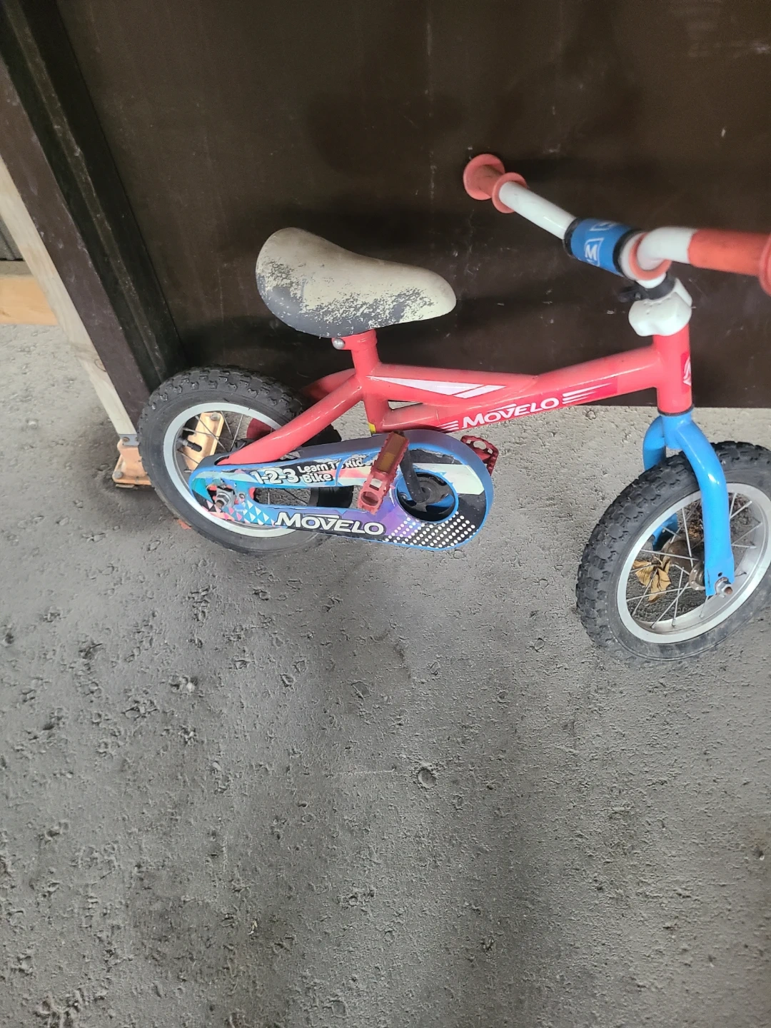 This red Movelo balance bike is great for little ones learning to ride. It has durable tires and a comfortable seat. Perfect for toddlers developing balance skills!