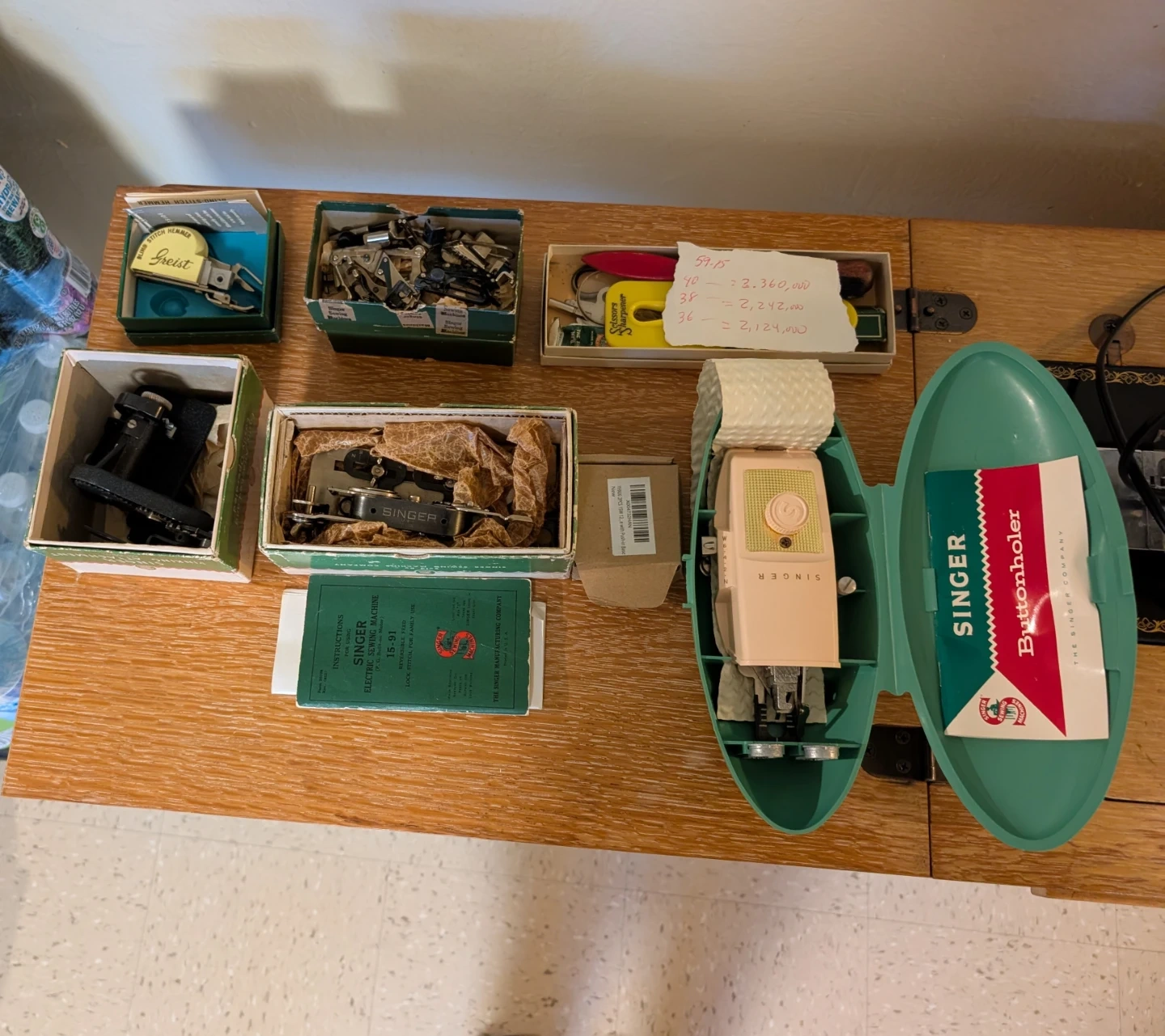 Vintage Singer Sewing Machine w/ Original Cabinet & Accessories