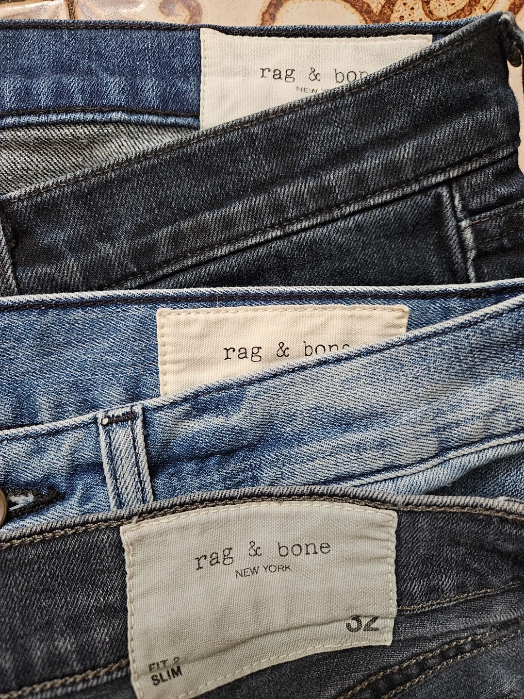 3 rag&bone brand jeans and 1 john varvatos. Size 32x30 slim fit. These were selling for $250 each. Good condition.