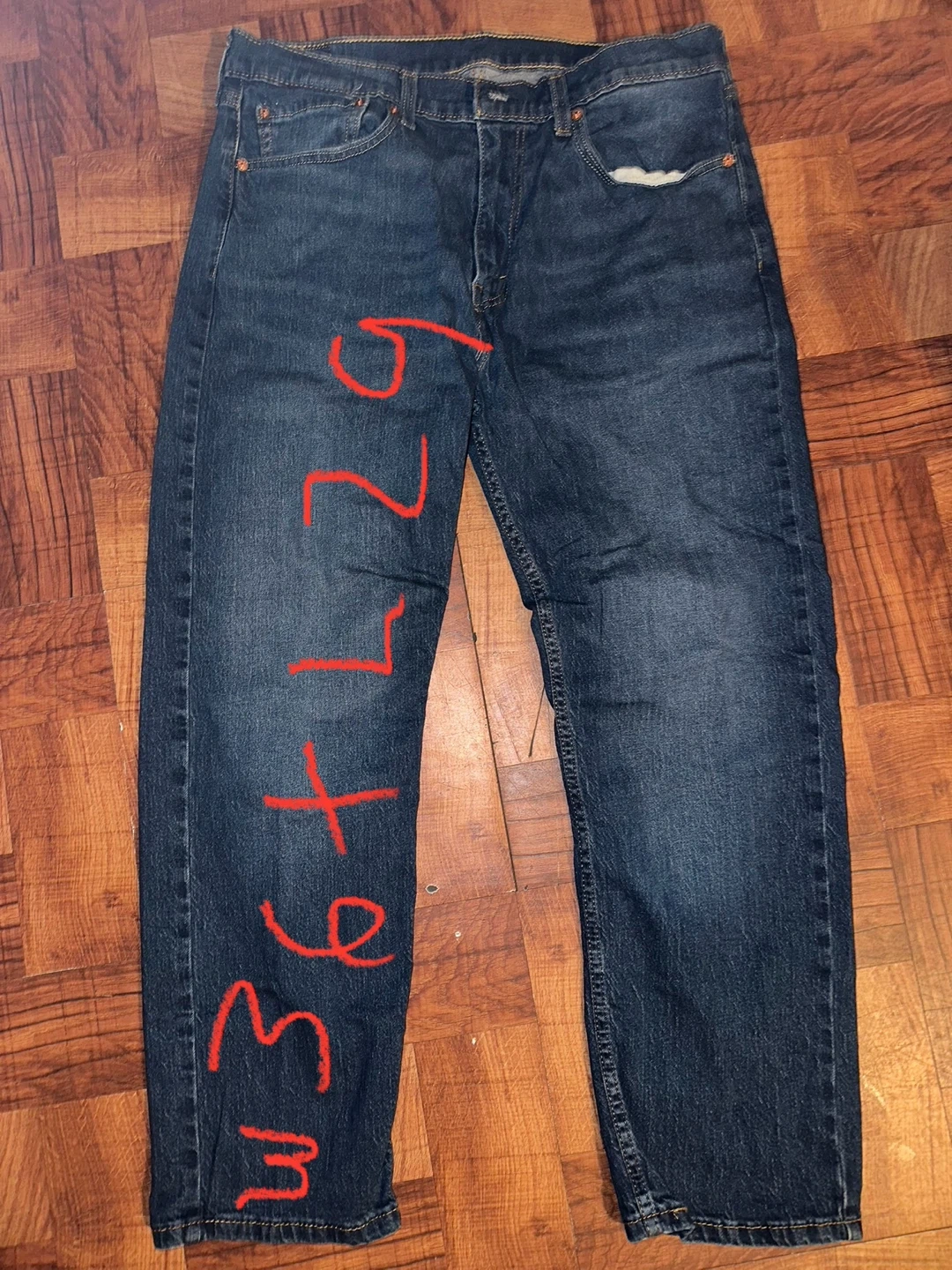 Classic blue denim jeans for men. These are a size 36 waist and 32 inseam. Comfortable and durable for everyday wear.
