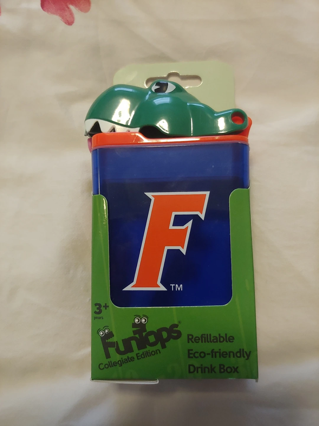 This Funtoops Collegiate Edition drink box is refillable and eco-friendly. It's BPA-free and phthalate free with a leak-proof design when closed. Suitable for kids 3+ years. New in box