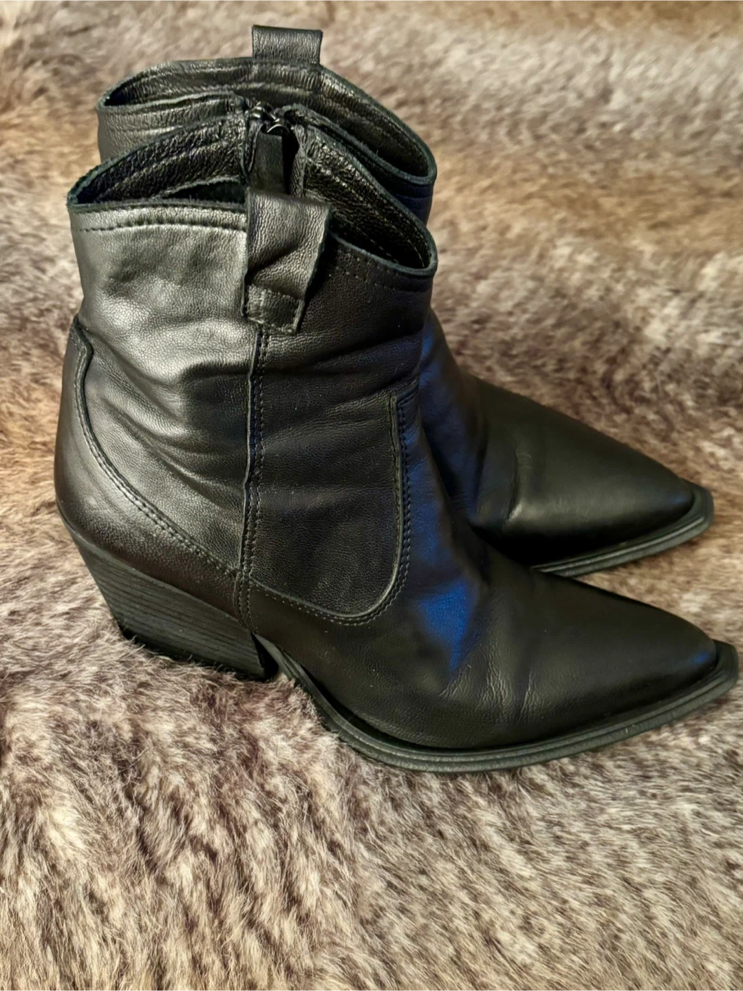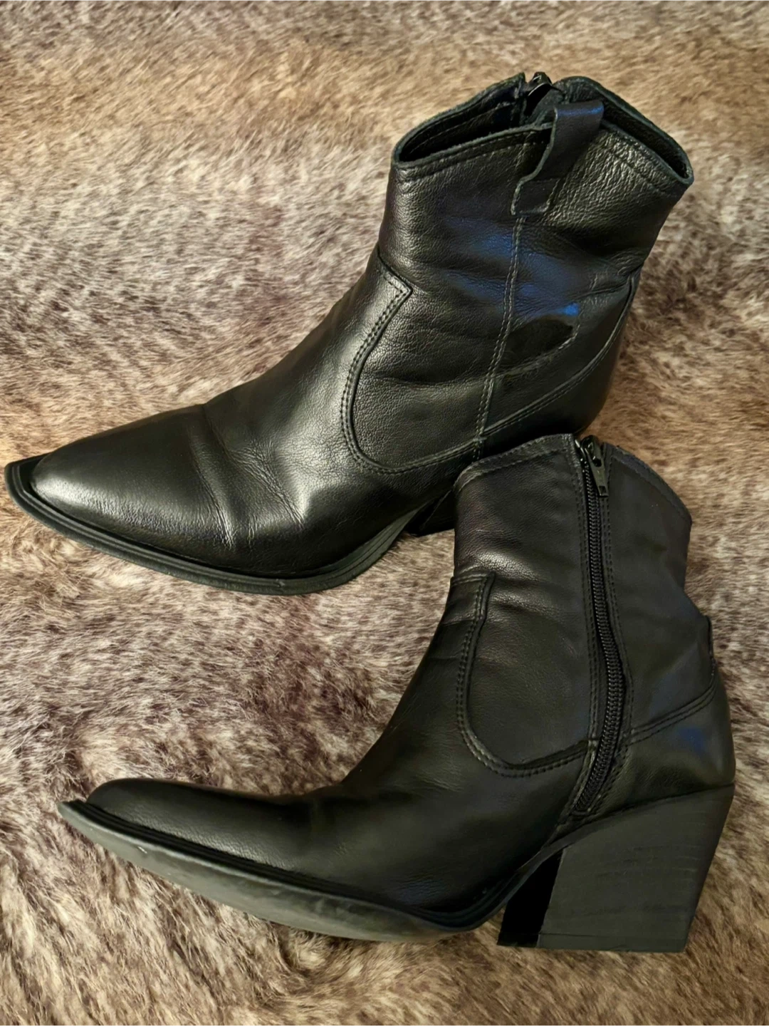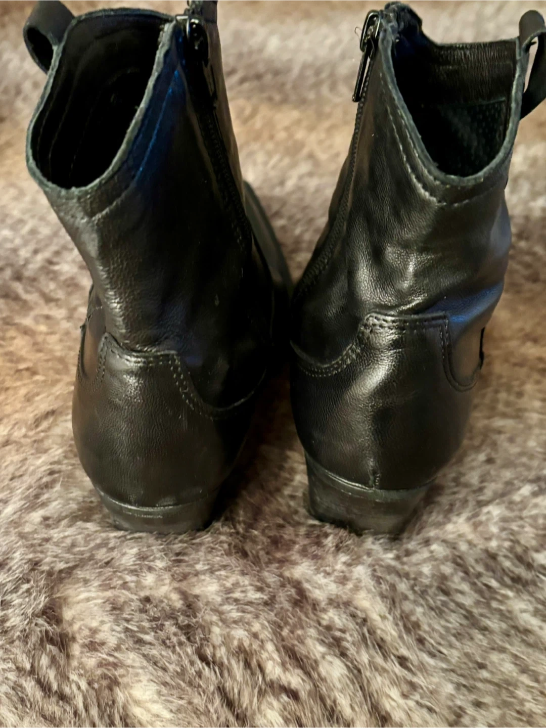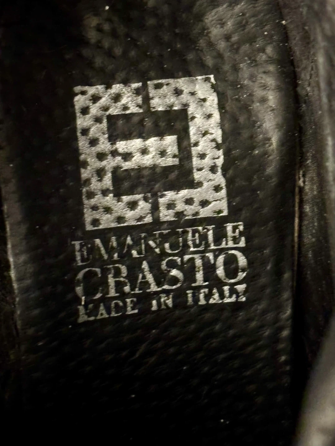 Selling a pair of black leather Emanuele Crasto ankle boots! These stylish boots are made in Italy. The size is 38. Comfortable, used. They're perfect for adding a touch of Italian flair to your wardrobe!