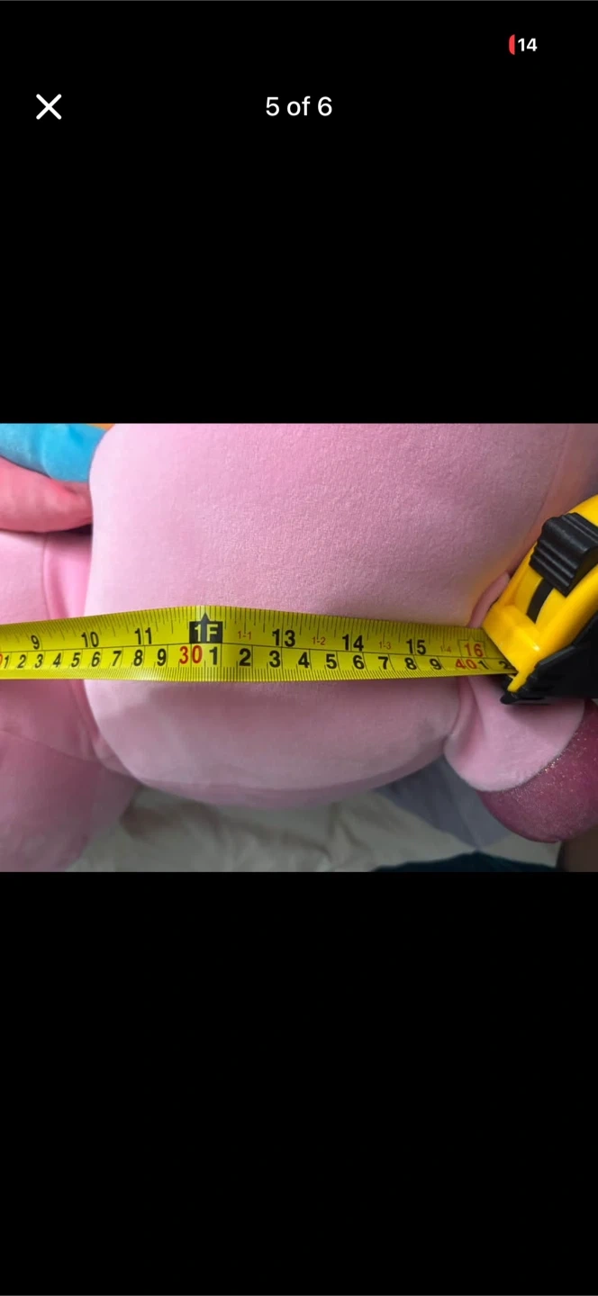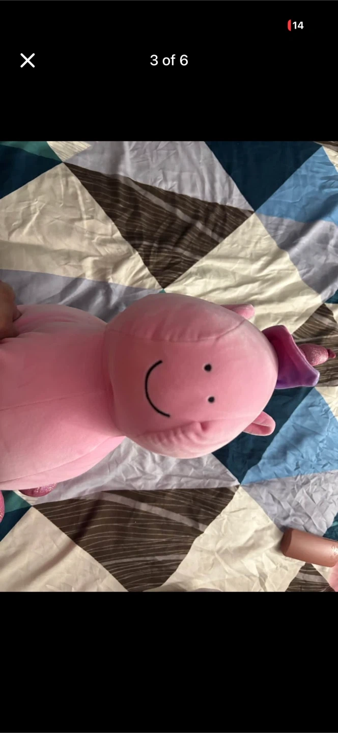This is a soft, pink plush stuffed animal toy with a sparkly horn and hooves. It features a simple smiling face with dot eyes. The toy measures approximately 15 inches in length across the torso. It's made of a fuzzy, soft material perfect for cuddles.smoke free pet free home .. pick up 551 Emerson street . Coquitlam . Cash only. No delivery. No e-transfer