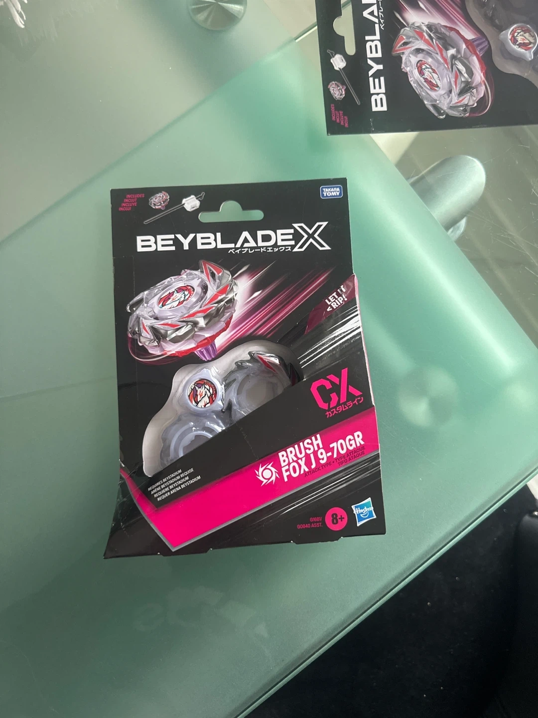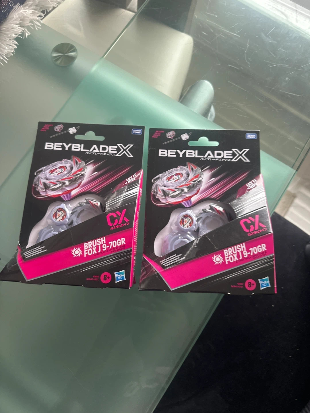 This is a 2-pack of Beyblade X BX-21 Brush Fox 9-70GR tops. Recommended for ages 8 and up. Includes Beyblade tops and launchers. Brand new never used no bargaining firm price