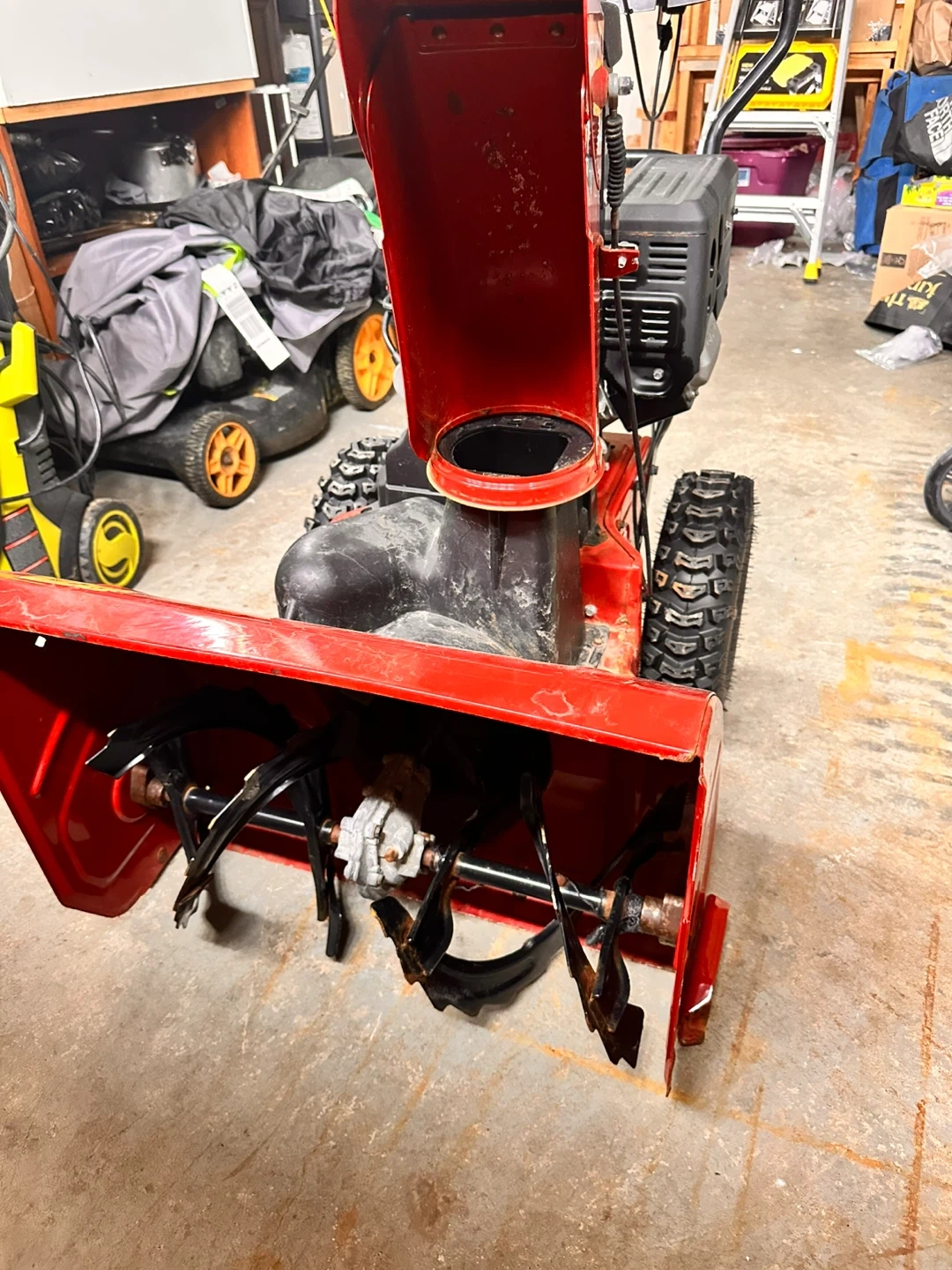 Red Toro snowblower for sale. It's a reliable machine for clearing snow. Features include a powerful engine and durable augers. Three seasons old - runs like new.